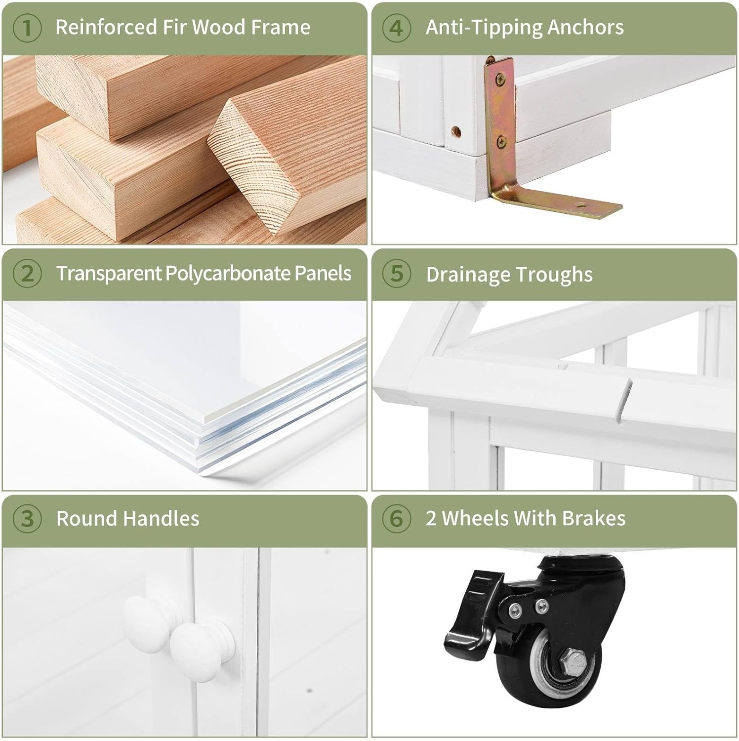 - STURDY FIR WOOD & POLYCARBONATE CONSTRUCTION: Our greenhouse combines natural fir wood frame with transparent polycarbonate panels that diffuse sunlight evenly, creating an ideal growing environment while protecting plants from harsh weather conditions, extending your growing season