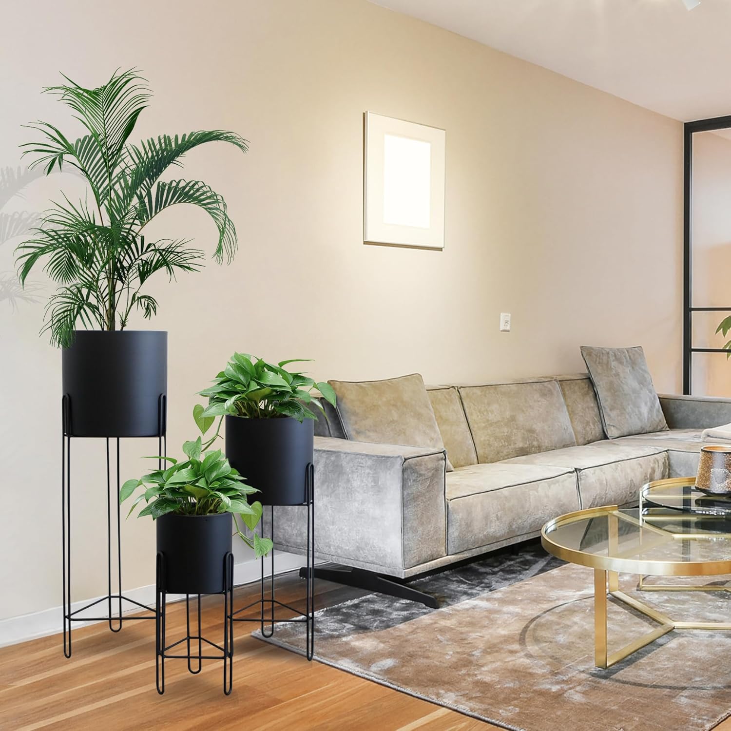 - MORDEN DESIGN:Add a touch of sophistication to your room with this set of three metal planters that come with sturdy metal stands. The planters feature a sleek and modern design style that creates an elegant ambiance,and it will be an eye-catching decoration in your room.