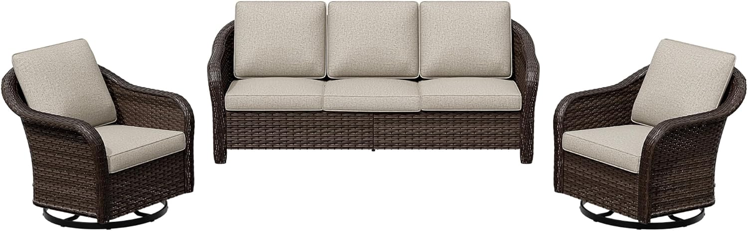 - Packing Included: The 3 pcs set includes 2 x swivel rocker chairs, 1 x 3-seat sofa. The tools and instructions needed for installation will also be in the box.The 4 pieces patio dining set will come in 2 boxes. They may come in different days