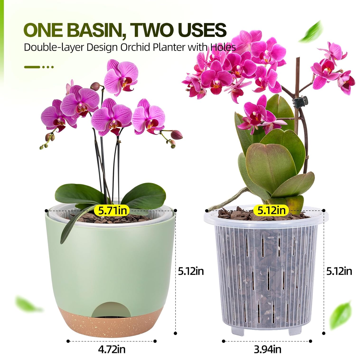 Self Watering Orchid Pots for Indoor Plants,5.8 Inch Macetas para Orqudeas,Flower Pots for Indoor Plants with Holes(Green)