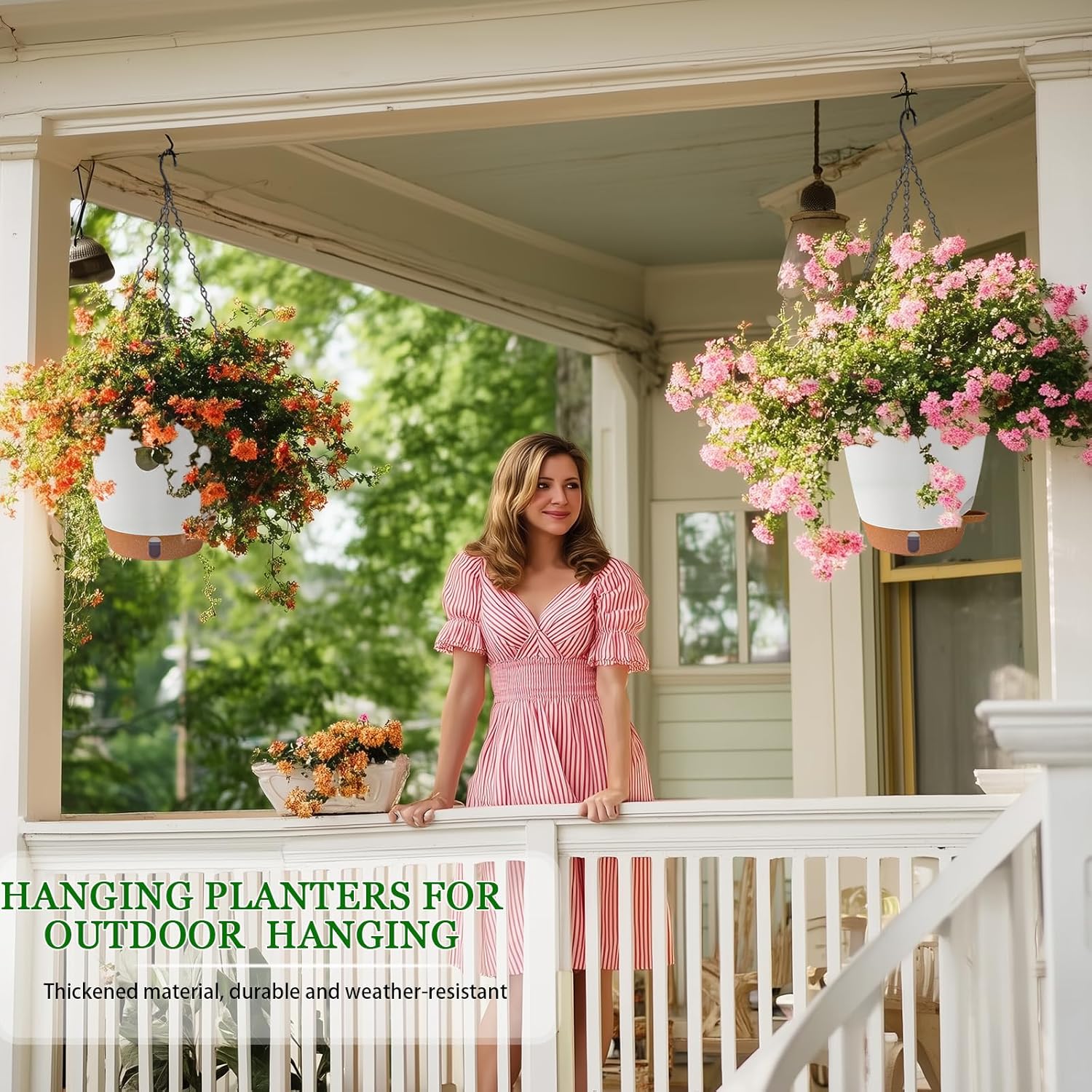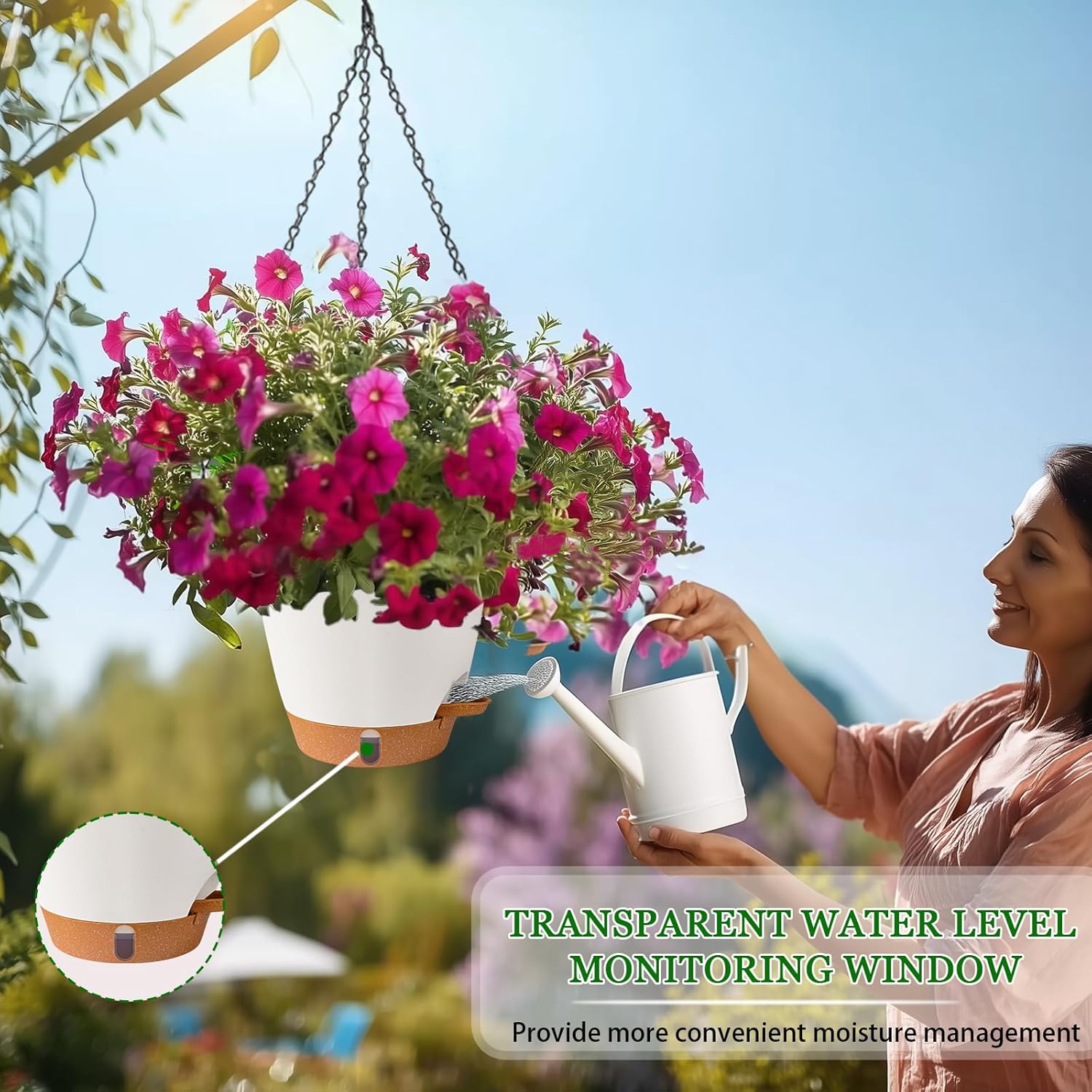 - 【Smart Self-Watering System】 Our hanging plant pots come with a REMOVABLE RESERVOIR TRAY that stores 7-10 day water supply. Absorbent cotton ropes automatically deliver moisture to soil when needed - ideal for vacations or busy lifestyles. Spend less time watering hanging baskets for indoor plants!