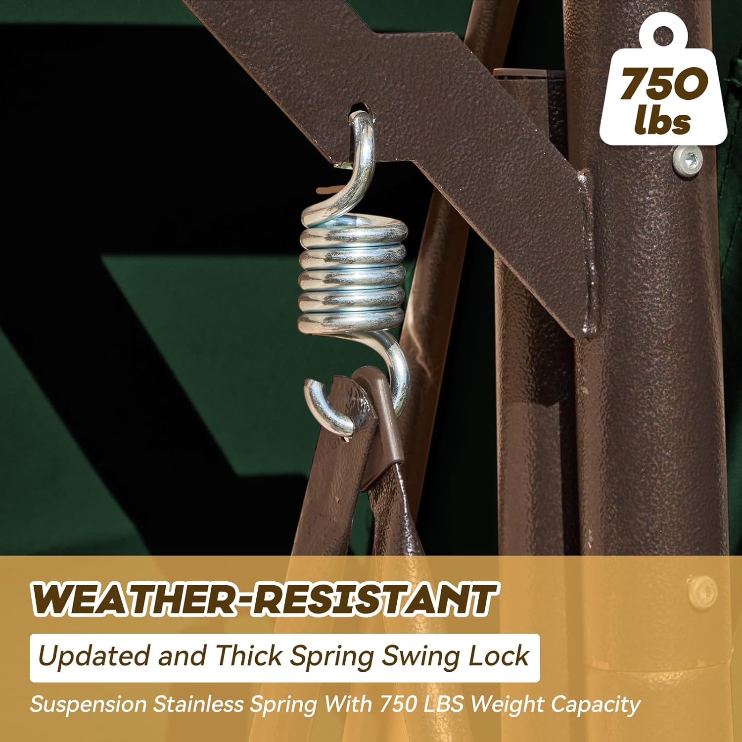 - ăSturdy and Safe Constructionă: The maximum weight capacity of porch swing is 750 pounds, our glider swing is designed for 3 adults to sit comfortably. The swing outdoor has a reliable buckle on backrest, ensuring stability and preventing any unwanted swinging. The double protection of 3 seat garden swing is designed for preventing accidental tipping.