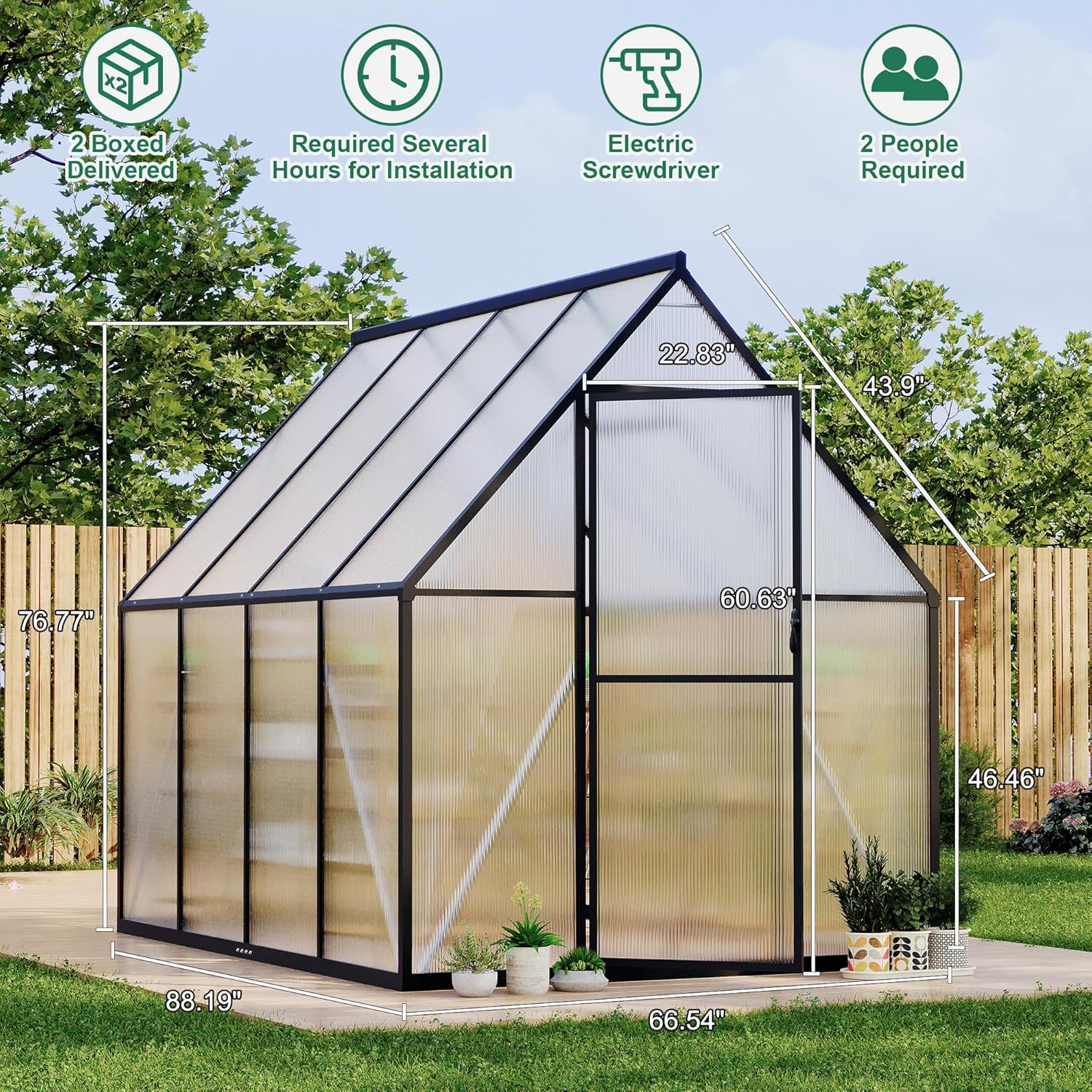 6'x7' Aluminum-Framed Polycarbonate Greenhouse, Heavy Duty Polycarbonate Greenhouse with Quick Setup Structure and Roof Vent, Large Enhanced Aluminum GreenhouseKit for Outdoors