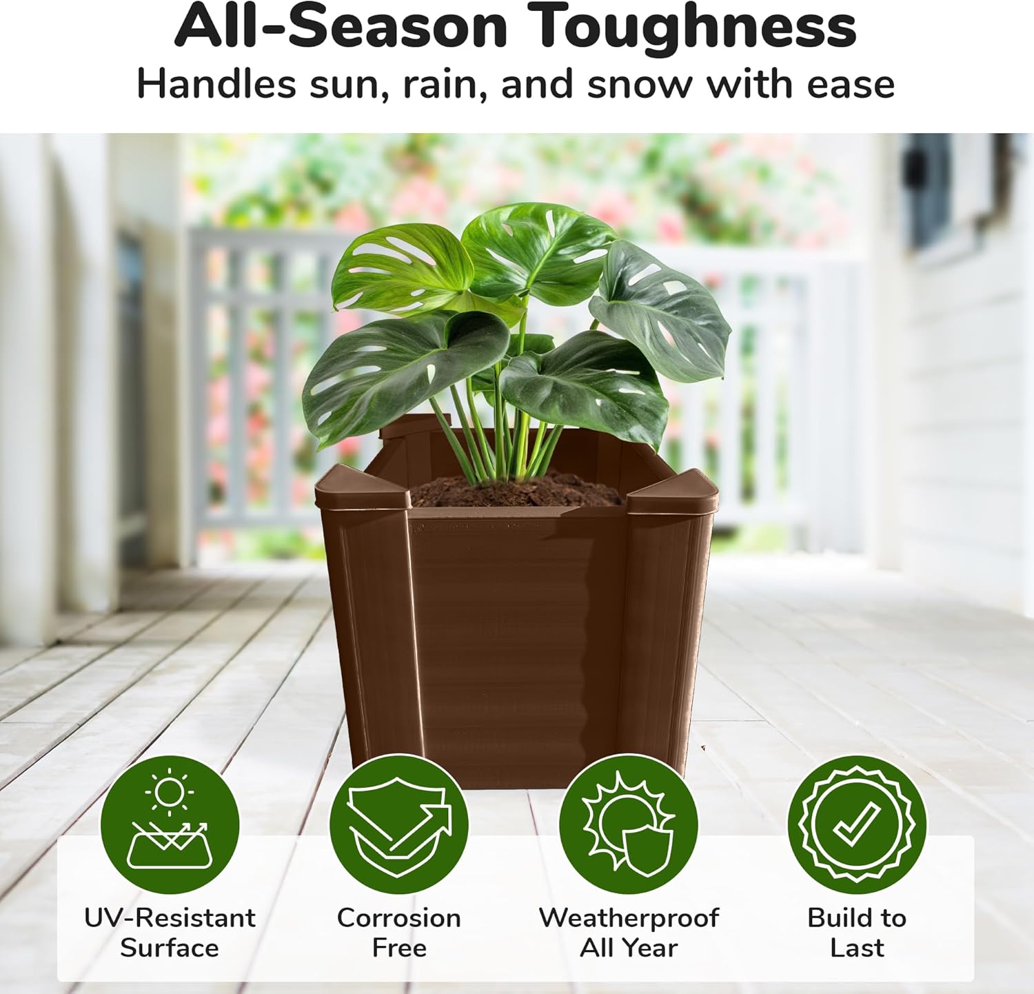Raised Garden Bed - 1x1 ft Planter Box - Brown HDPE - No Tools Needed - DIY Kit for Urban Gardening, Flowers, Herbs & Vegetables - Made in The USA - 2 Pack