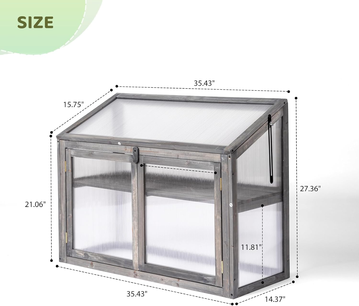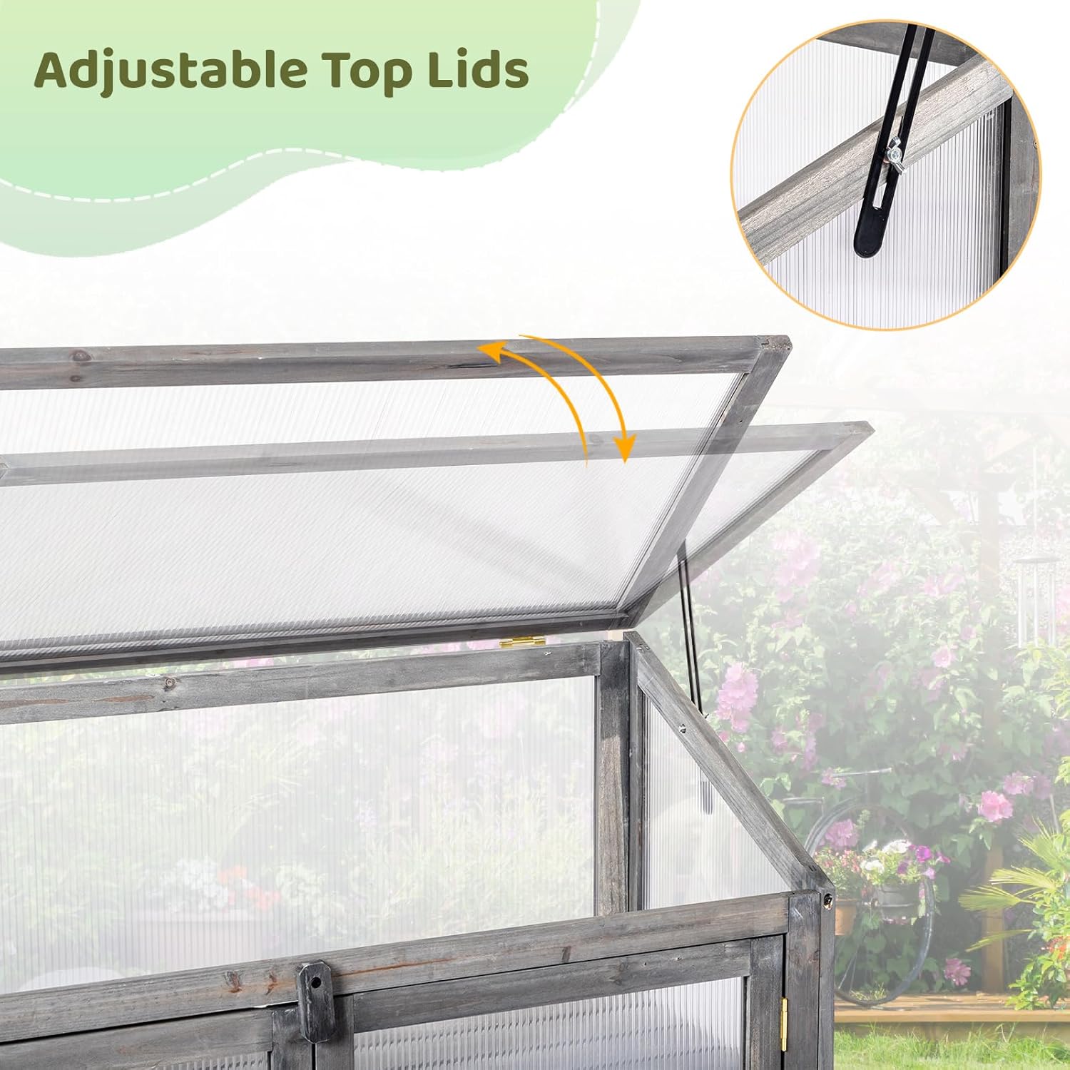 VINGLI Cold Frame Greenhouse, Mini Wooden Green House with Flip-Top Roof, Raised Flower Planter Shelf, Small Lockable Wood Cabinet for Plants Indoor Outdoor (Grey, 35.43" x 14.37" x 27.36")