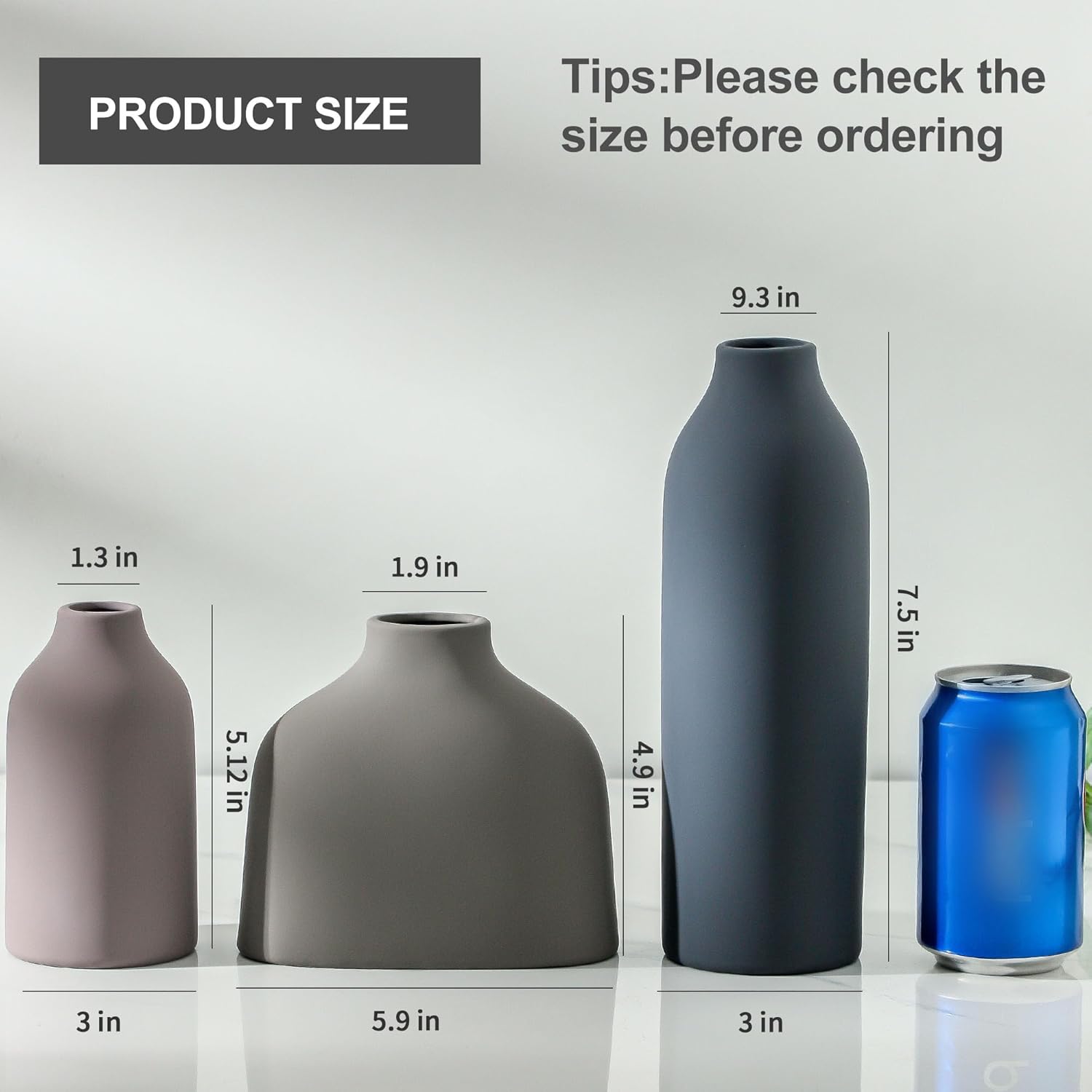 - Masterful Ceramic Craftsmanship β This vase set of 3 is meticulously crafted from premium clay and fired at high temperatures for lasting durability. Featuring a corrosion-resistant surface, the vases also have a waterproof interior, making them ideal for holding fresh flowers and preserving their vibrancy. They also elegantly showcase artificial plants and dried flowers, adding a timeless charm to your home.