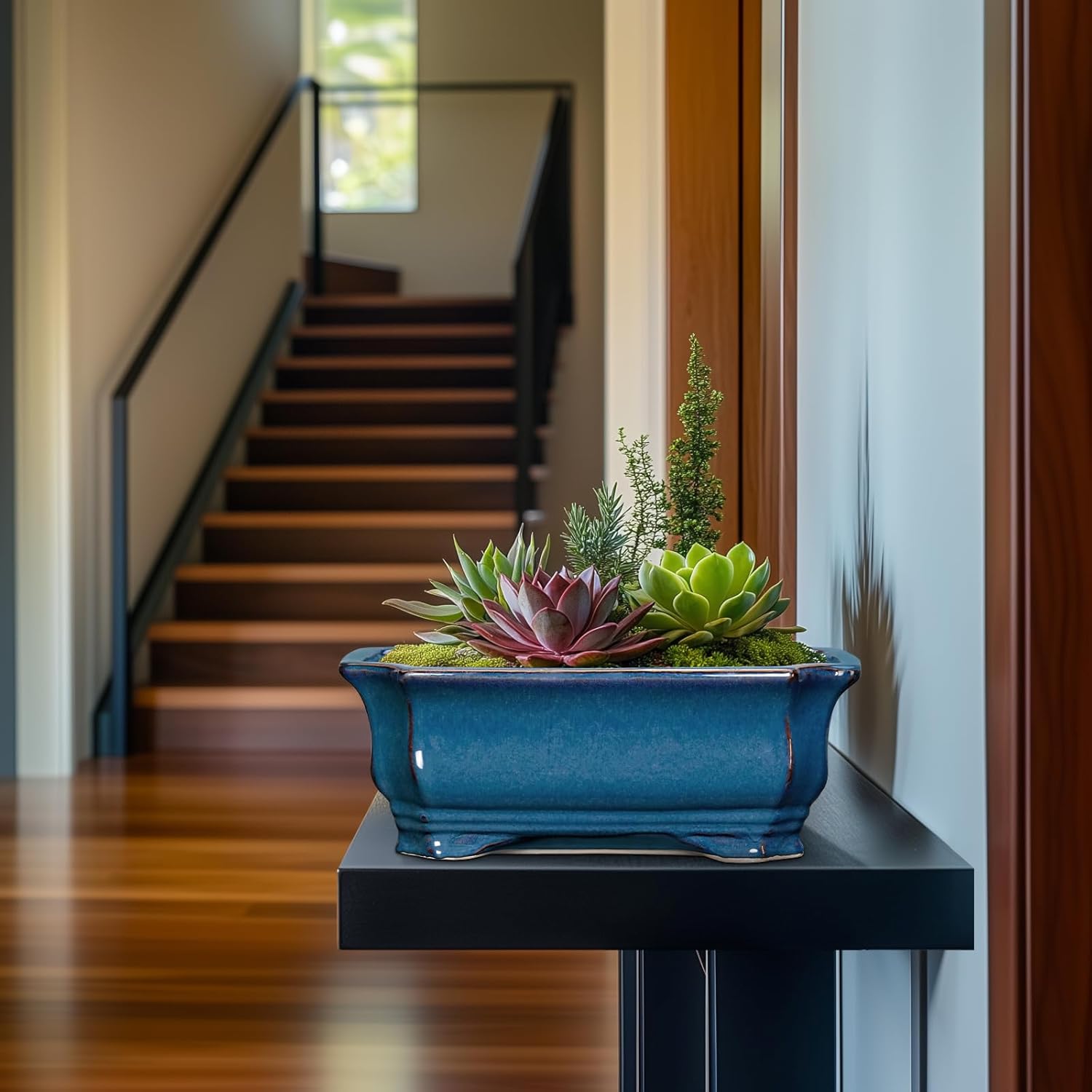 - Planter Design: Featuring a beautiful blue reactive glaze finish and elegant rectangluar appearance, this bonsai pots combines practicality with beauty, suitable for table, desk, windowsill, shelves, living room, bedroom, bathroom, porch, study, office, patio, balcony, zen garden, any indoor or outdoor space