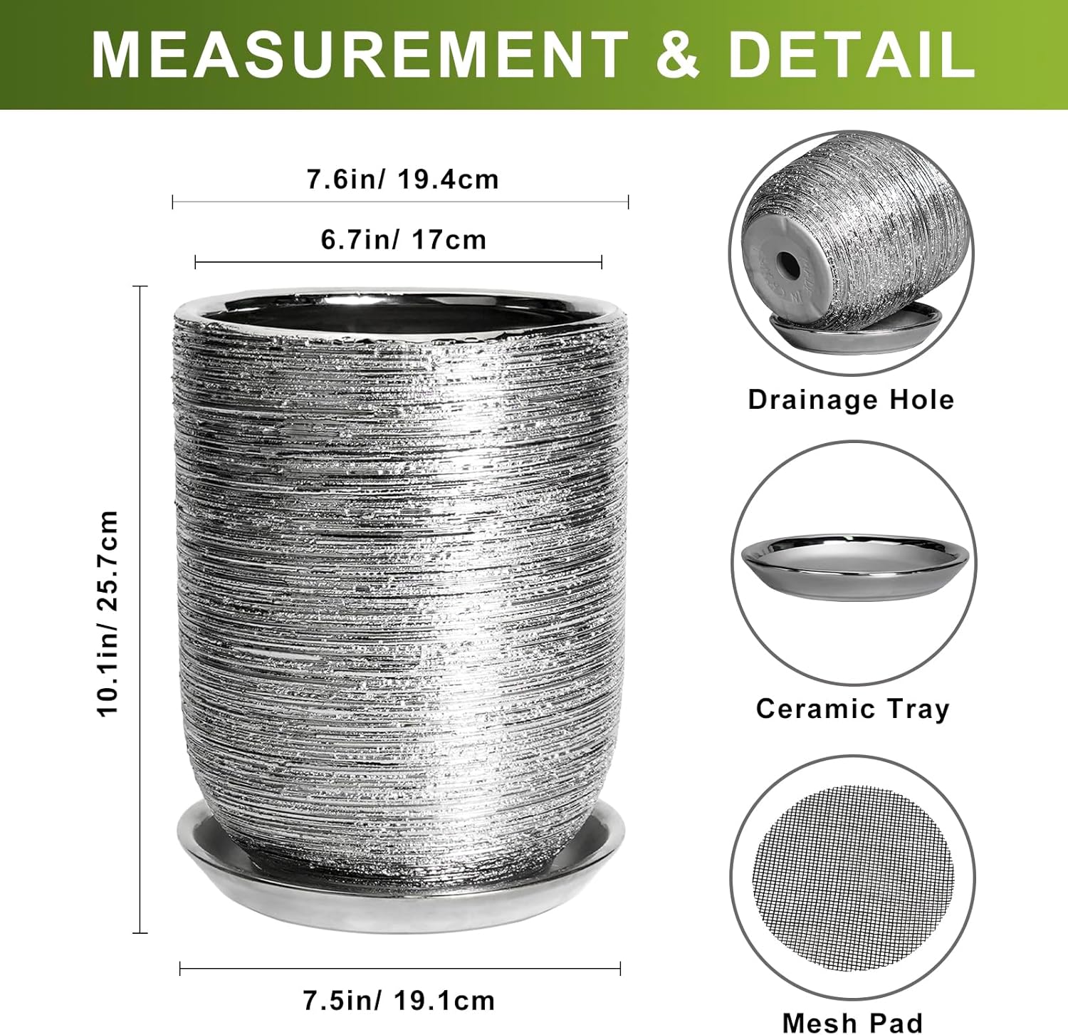 - Size of Ceramic Plant Pot: Each silver planter is 7.6β in outer diameter and 10.1β in height. The optimal size makes plant pot an ideal home for planting cactus, monstera, money tree, ficus lyrata, olive tree, succulent