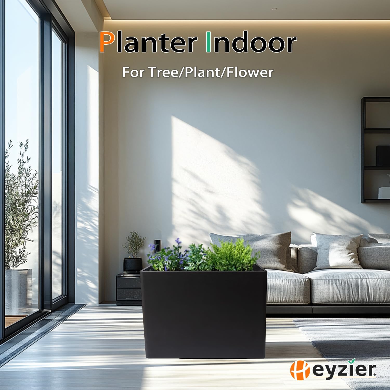 Rectangular Planter Box for Outdoor Plants, Large Tall Resin Garden Pots for Front Porch, Patio, Indoor (Black, 25 x 21 inch)