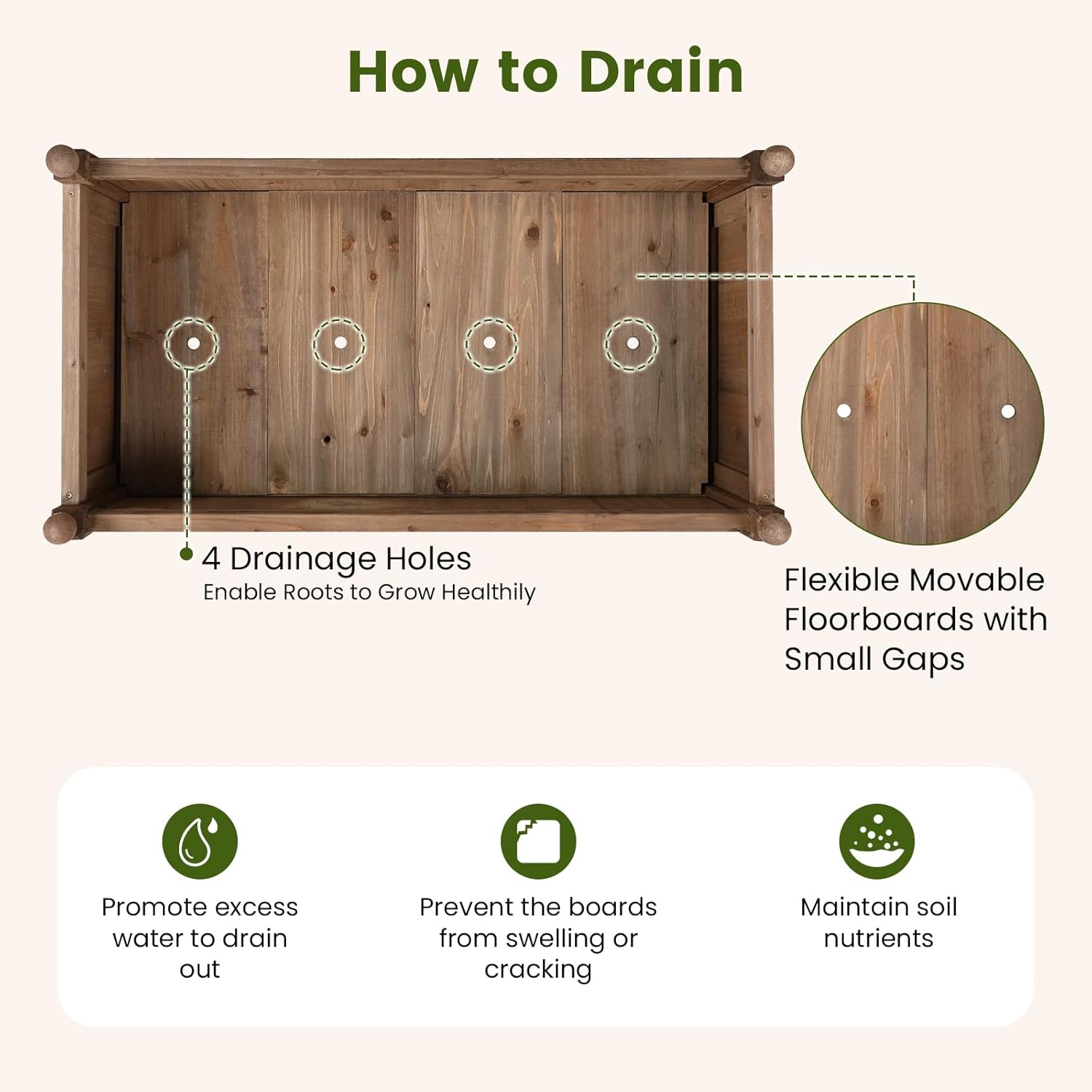 - [Multi-scene Application]: Featuring rustic finish, the wood planting bed looks elegant. Moreover, the wooden planter with elegant decorative corners will add its beauty, making it seamlessly complement with your garden, backyard and patio.