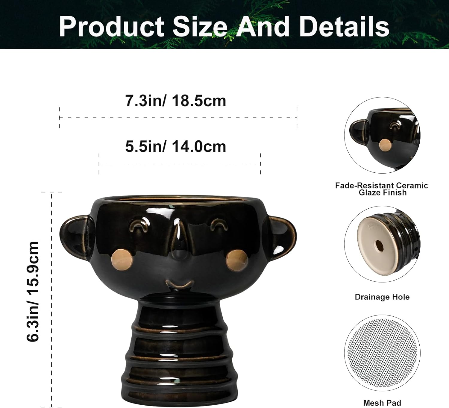 - Package Includes: One ceramic planter (including both ears) with a width of 5.3 inches and a height of 6.3 inches, and a mesh is 6 cm. Plants Not Included