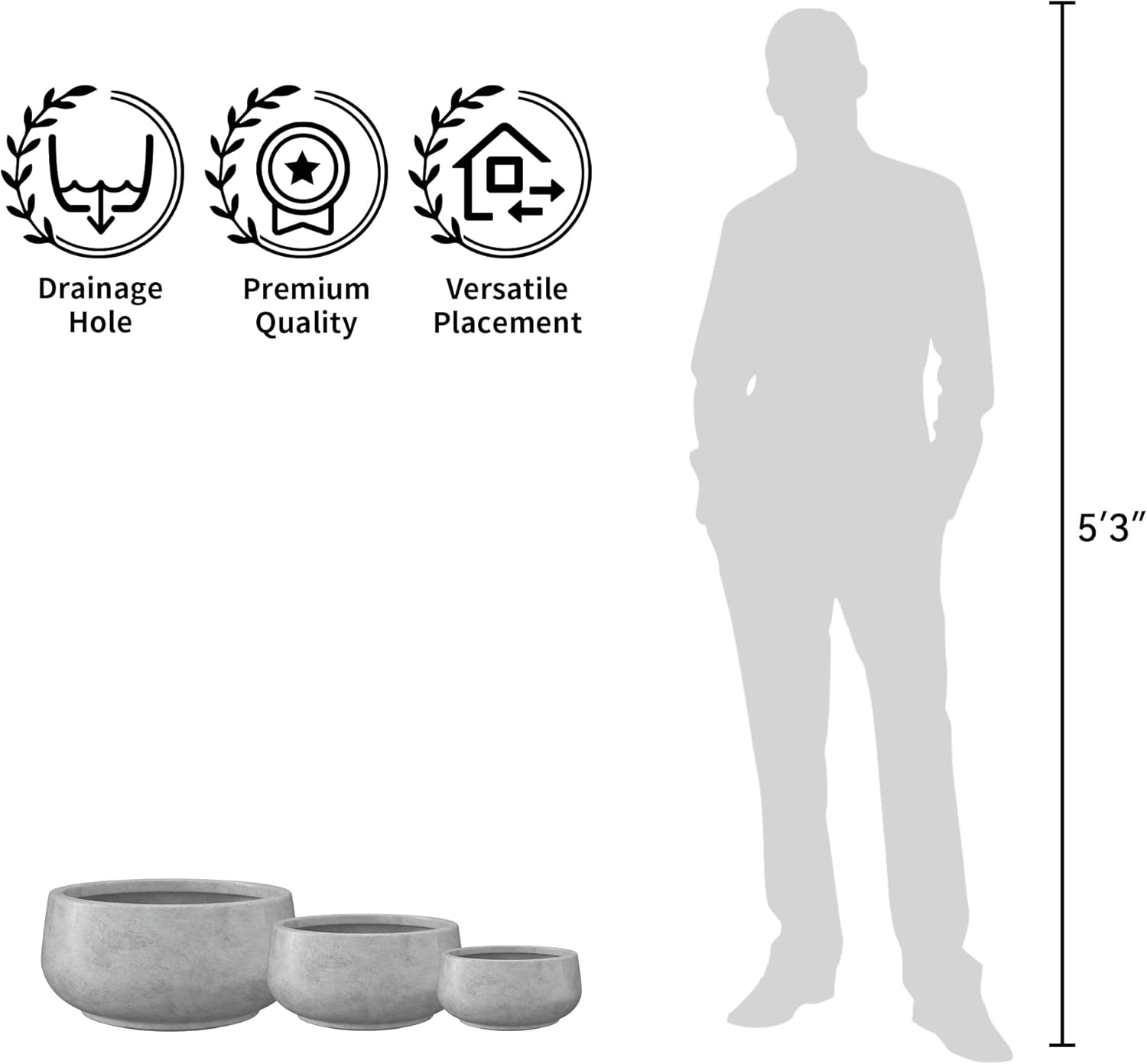 Kante 16.9" Dia Round Concrete Bonsai Planters, Outdoor Indoor Garden Plant Pot with Drainage Hole for Home, Patio, Garden, Concrete Gray
