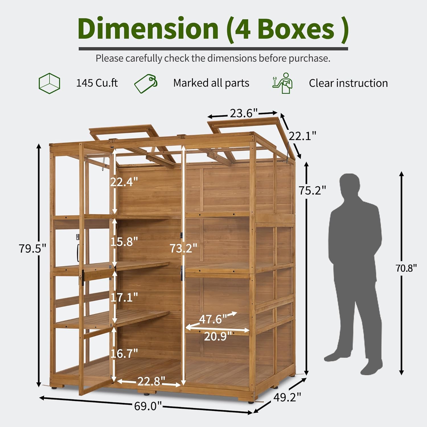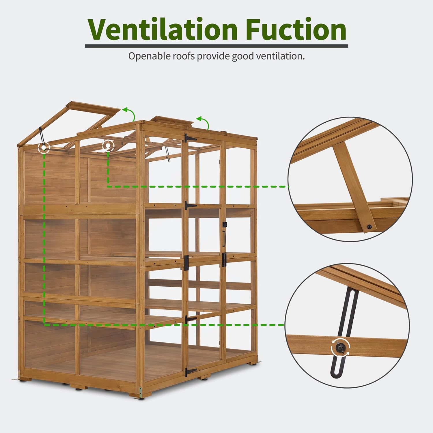 - Fir Solid Wood: The garden greenhouse is made of fir wood, and the exterior has been polished to express a rustic style; Natural Color blends easily with other dรฉcor and natural settings