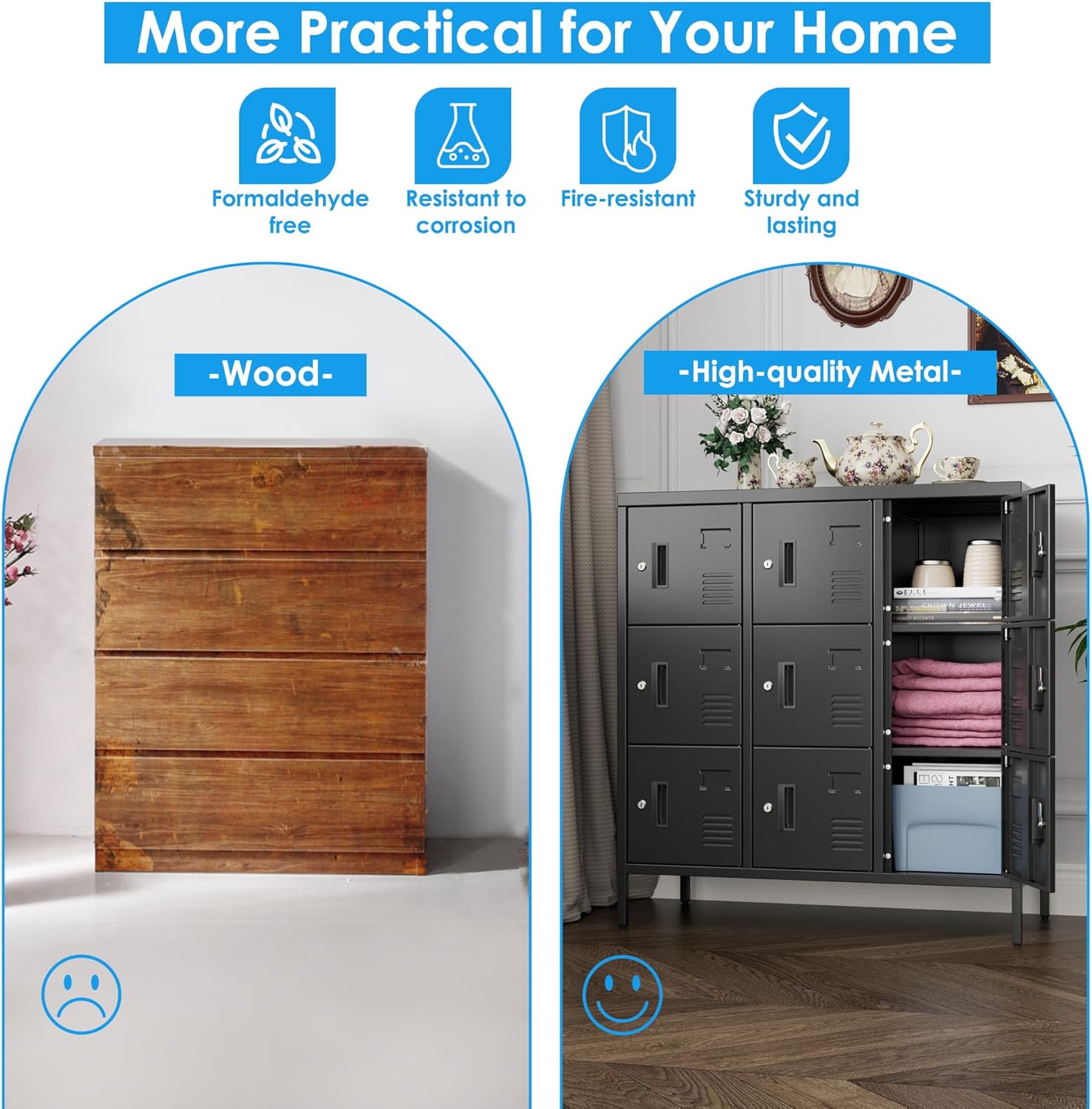 - ăMultifunctional-useăMetal storage locker suitable for use in homes, offices, gyms, schools, locker rooms and dormitories. Easy to summarize all kinds of clothes and items.
