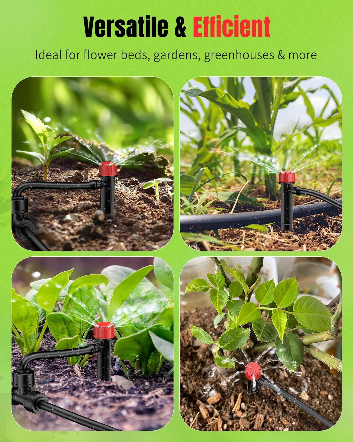- Adjustable Water Flow: Max flow rate: 18 GPH. Simply rotate the head to switch from gentle droplets to powerful spray, covering up to 6.5 feet. Effortlessly customize the perfect water flow for targeted and precise irrigation