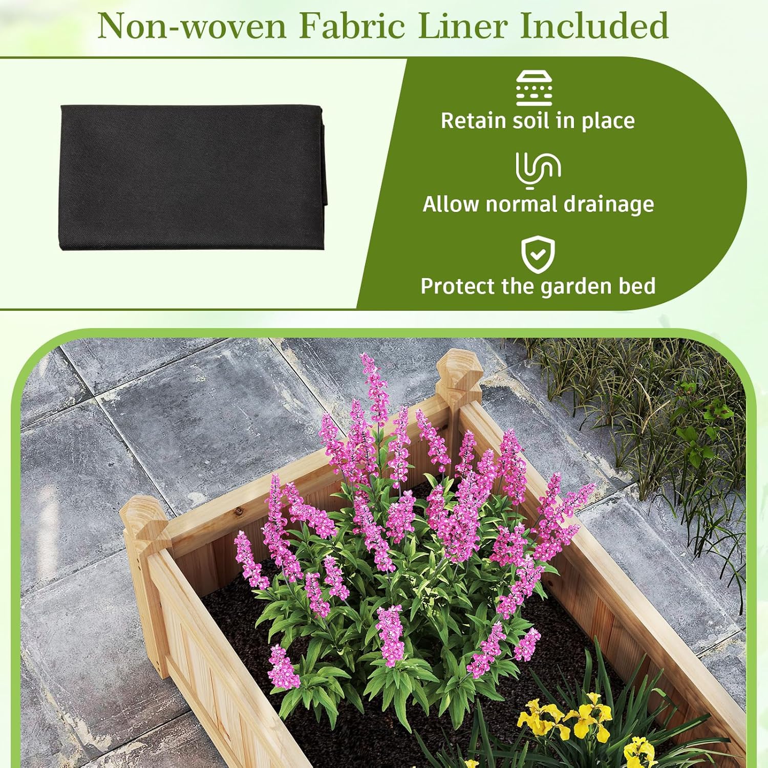 - 【Premium Fir Wood Material】 Crafted from high-quality natural fir wood, our garden box features an attractive natural wood grain that adds to the overall aesthetic appeal of the garden with minimal ecological impact. In addition, the smooth planter surface is coated with a waterproof coating for an excellent outdoor durability and allows for extended service life.