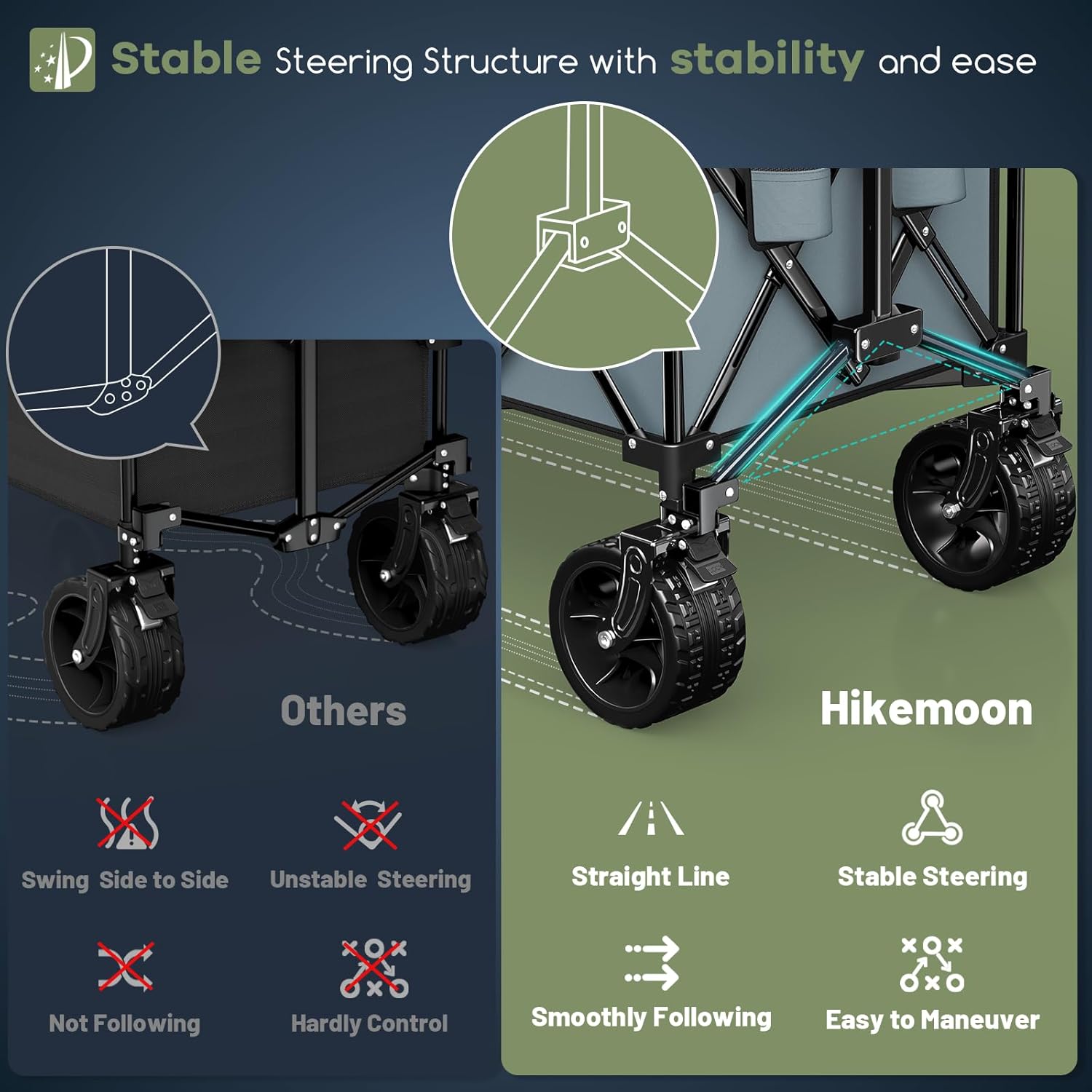 - ใ๐๐๐ญ๐๐ง๐ญ๐๐ ๐๐ญ๐๐๐ฅ๐ ๐๐ญ๐๐๐ซ๐ข๐ง๐ ๐๐ญ๐ซ๐ฎ๐๐ญ๐ฎ๐ซ๐ & ๐๐๐ฃ๐ฎ๐ฌ๐ญ๐๐๐ฅ๐ ๐๐๐ง๐๐ฅ๐ ๐ ๐จ๐ฅ๐๐๐๐ฅ๐ ๐๐๐ ๐จ๐ง ๐๐๐ซ๐ญ๐ฌใ: The upgraded stable steering structure ensures the folding wagon moves in a straight line without swaying or wheel collision. The handle can be rotated 90ยฐ forward and backward, making it easier for people of different heights to use. The rebound function keeps the handle upright, so you donโt have to bend over to reach it. These designs make the wagon easy, stable, and maneuverable to pull and steer.
