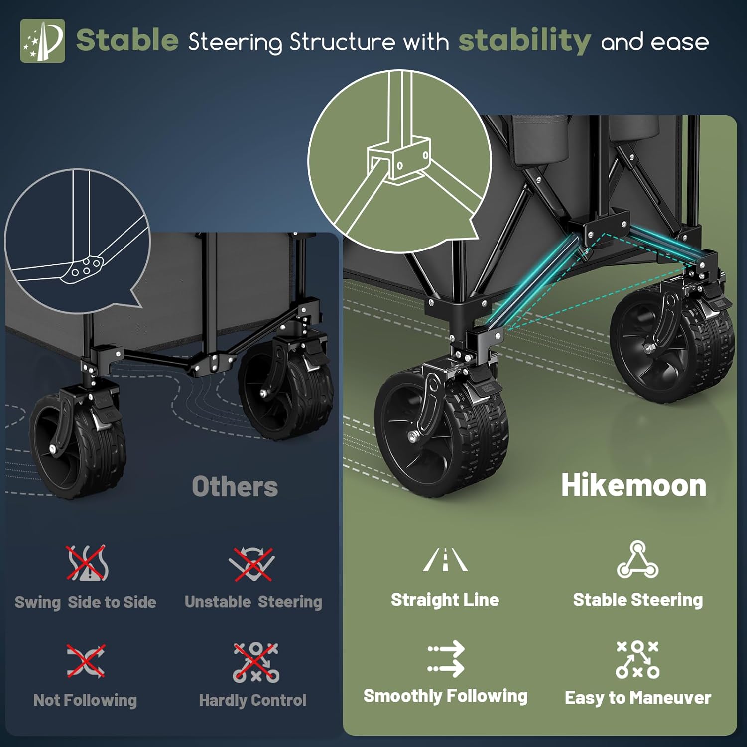 - ใ๐๐๐ญ๐๐ง๐ญ๐๐ ๐๐ญ๐๐๐ฅ๐ ๐๐ญ๐๐๐ซ๐ข๐ง๐ ๐๐ญ๐ซ๐ฎ๐๐ญ๐ฎ๐ซ๐ & ๐๐๐ฃ๐ฎ๐ฌ๐ญ๐๐๐ฅ๐ ๐๐๐ง๐๐ฅ๐ ๐ ๐จ๐ฅ๐๐๐๐ฅ๐ ๐๐๐ ๐จ๐ง ๐๐๐ซ๐ญ๐ฌใ: The upgraded stable steering structure ensures the folding wagon moves in a straight line without swaying or wheel collision. The handle can be rotated 90ยฐ forward and backward, making it easier for people of different heights to use. The rebound function keeps the handle upright, so you donโt have to bend over to reach it. These designs make the wagon easy, stable, and maneuverable to pull and steer.