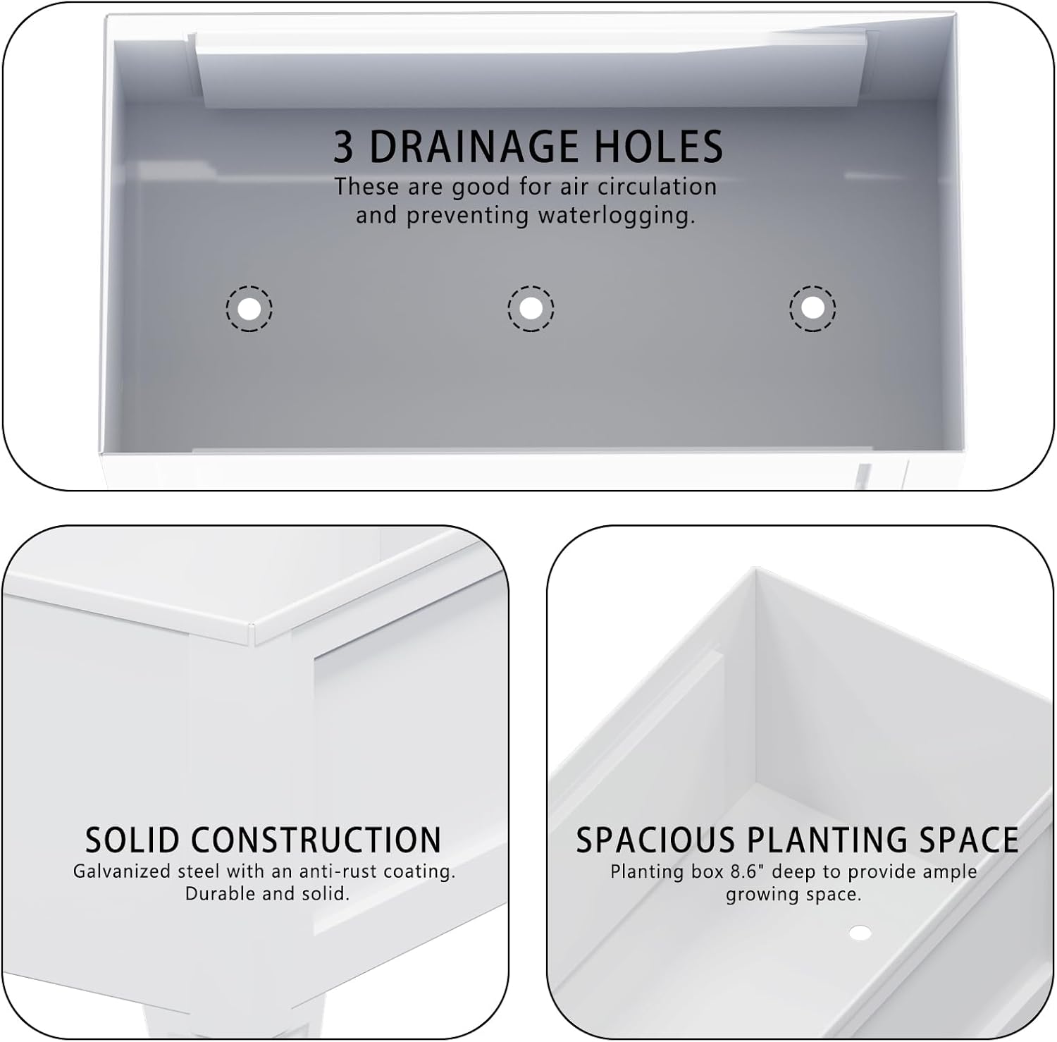 Raised Garden Bed with Low Profile Design Metal Planter Box for Growing Fresh Herbs Vegetables Flowers Succulents&Other Plants for Outdoor Backyard Patio Deck Balcony White