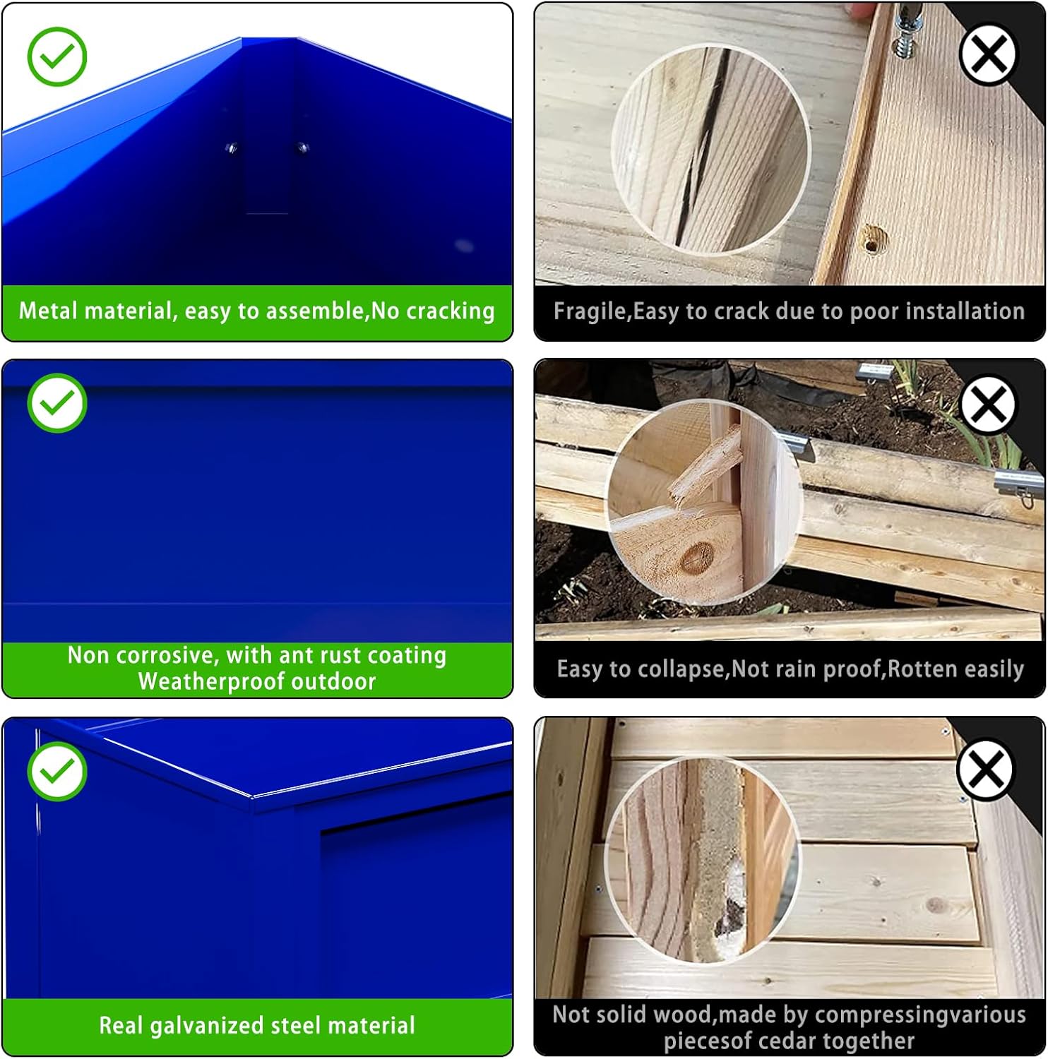 Raised Garden Bed with Low Profile Design Metal Planter Box for Growing Fresh Herbs Vegetables Flowers Succulents&Other Plants for Outdoor Backyard Patio Deck Balcony Blue