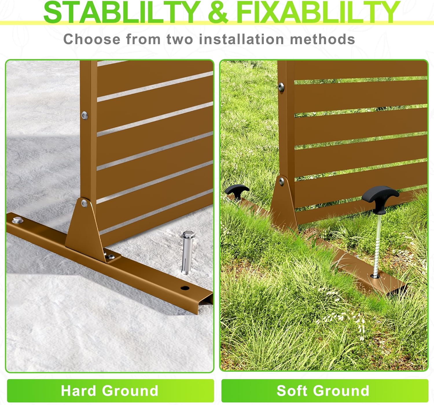 - 【Robust Metal Build】The metal privacy screen boasts a robust construction crafted from high-quality galvanized steel. Designed to endure the rigors of outdoor elements, its sturdy build guarantees prolonged durability.