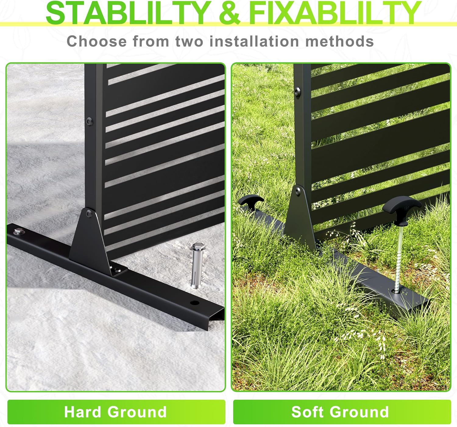 - 【Robust Metal Build】The metal privacy screen boasts a robust construction crafted from high-quality galvanized steel. Designed to endure the rigors of outdoor elements, its sturdy build guarantees prolonged durability.