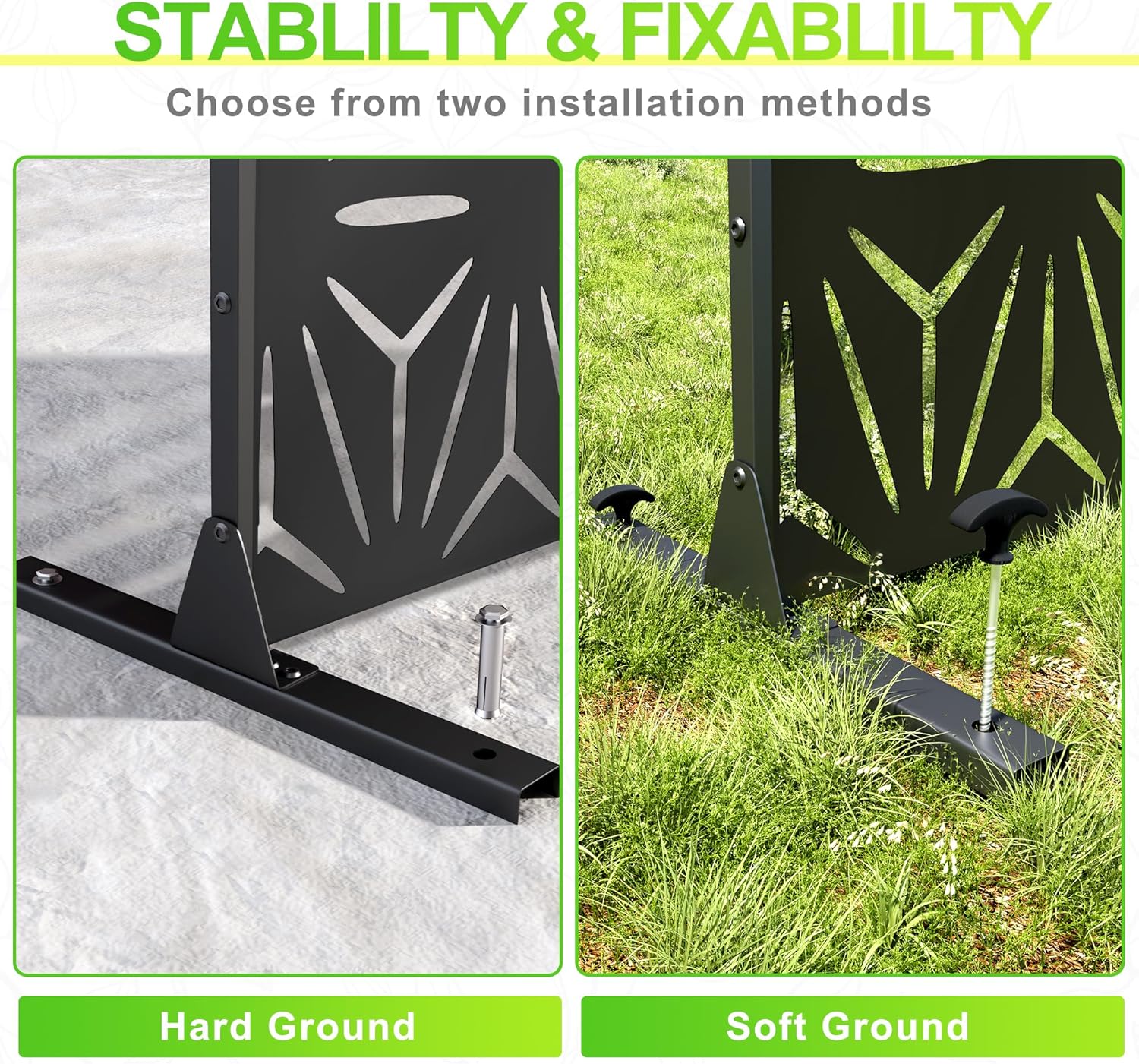 - 【Robust Metal Build】The metal privacy screen boasts a robust construction crafted from high-quality galvanized steel. Designed to endure the rigors of outdoor elements, its sturdy build guarantees prolonged durability.