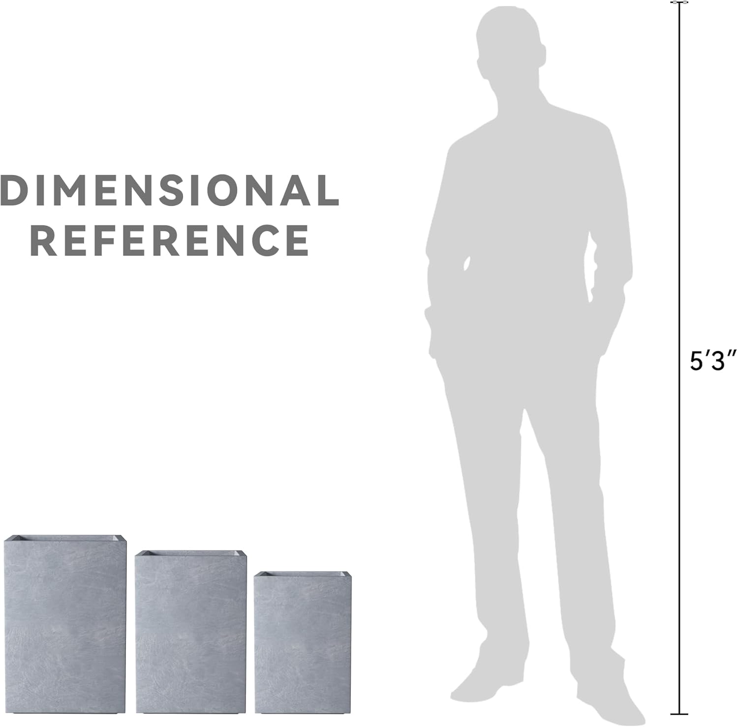 Kante 18.5",15.7",12.6" H Tall Rectangular Concrete Planters Set of 3, Outdoor Indoor Lightweight Plant Pots with Drainage Hole and Rubber Plug, Modern Style for Home Garden Patio, Slate Gray