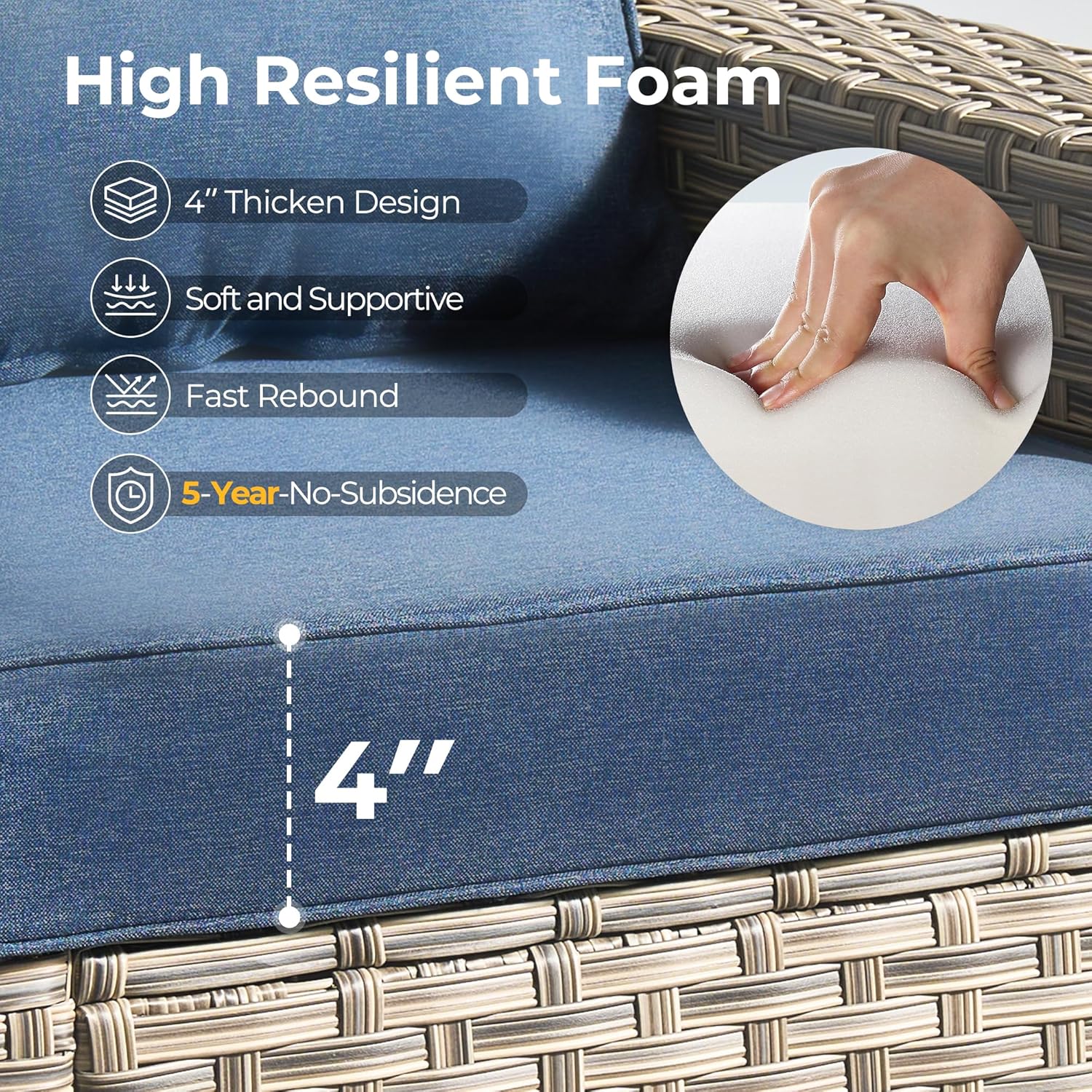 HOOOWOOO Outdoor Sectional Patio Furniture Set,7 Pieces Wicker Conversation Sets,Extra Deep Out Door Sofa Outside Furniture Couch with Ottoman,Denim Blue