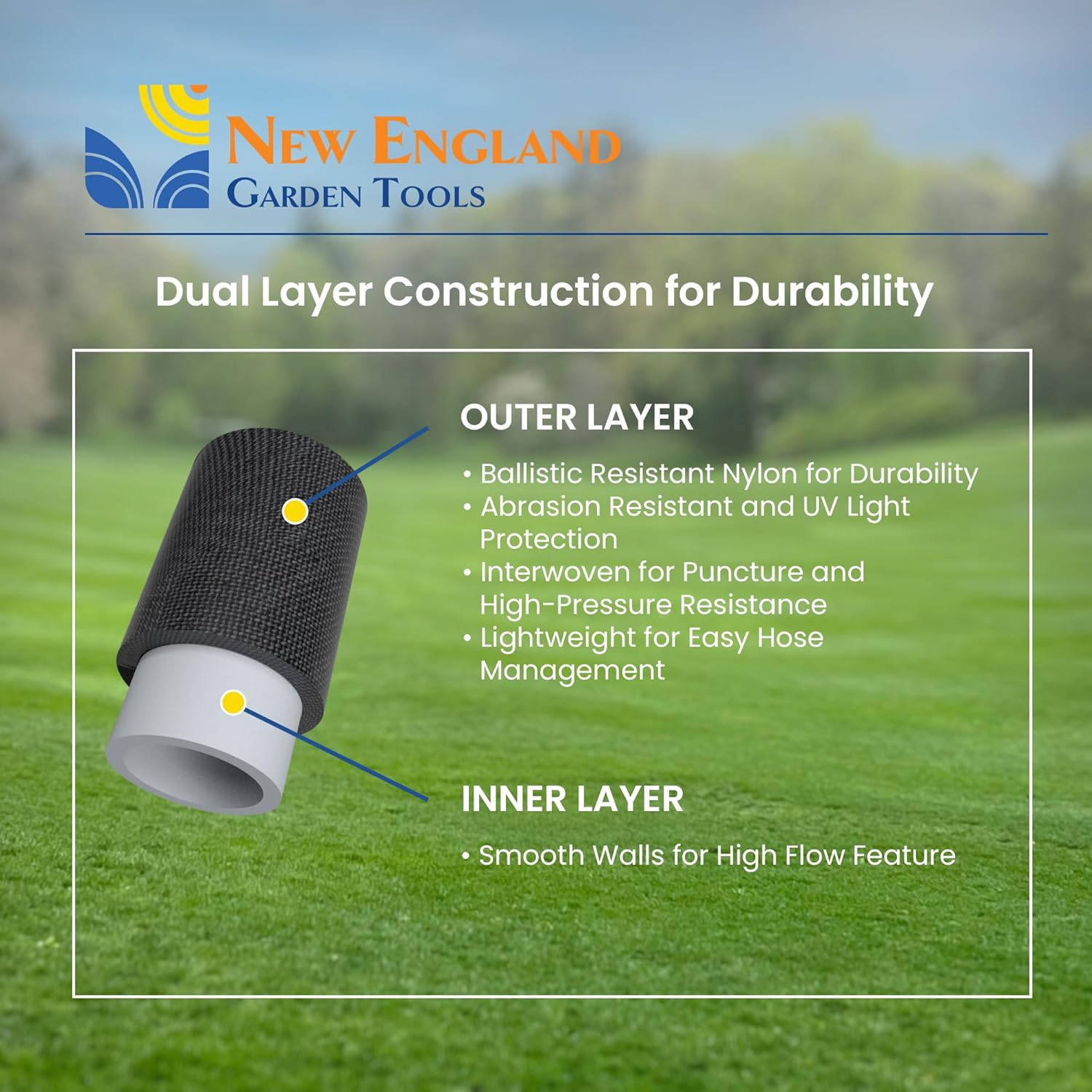 Flat Garden Hose (25 foot x 5/8 inch), Lightweight, Durable Fiber Jacket, Flexible & Kink Free, Non-Expandable Water Hose, Easy Handling in All-Weather Conditions, 700008 by New England Garden Tools