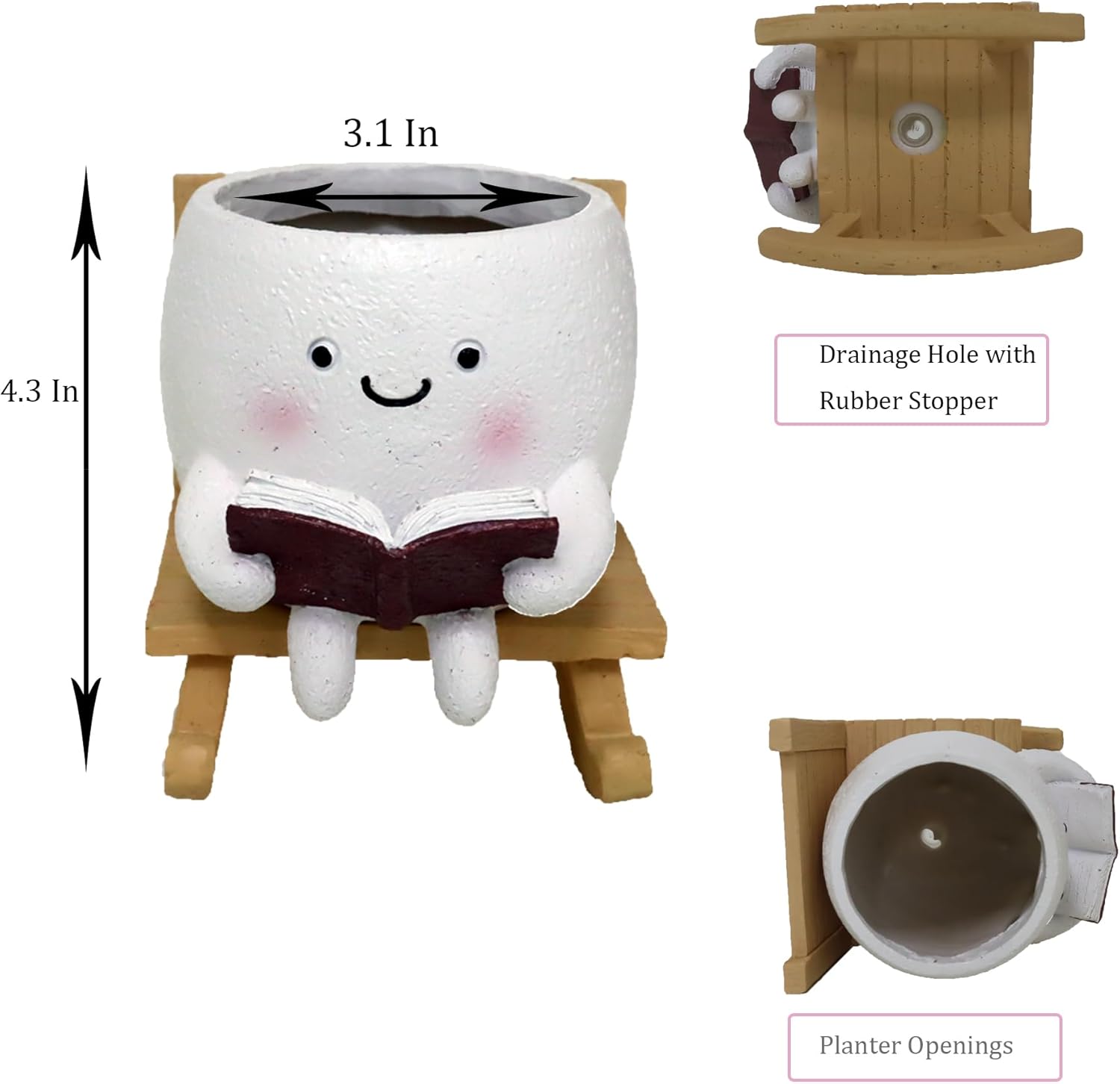 - 🌼 Novelty Design Planter: The shape of the head planter is a lady sitting on the rocking chair reading the book. The face planter has a drainage hole in the bottom to prevent overwatering and promote healthy plant growth. Simply place your desired plant inside, add soil, water as needed, and watch your greenery flourish.