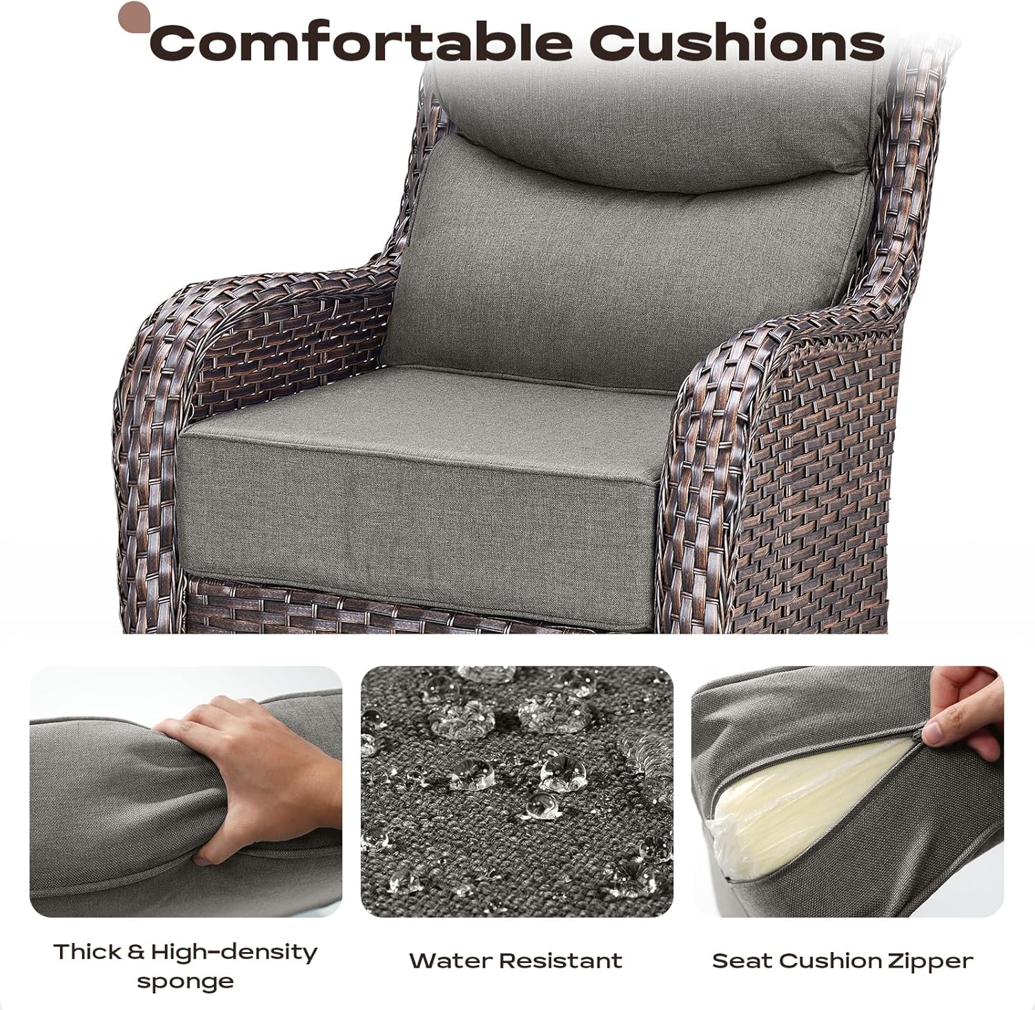 - 【Rocking and 360°Swivel】Enjoying all-around mobility with rocker/glider feature.Full rotation allows you to face or leave the sun easily.The unique design of swinging back and forth allows you to enjoy ultimate relaxation.