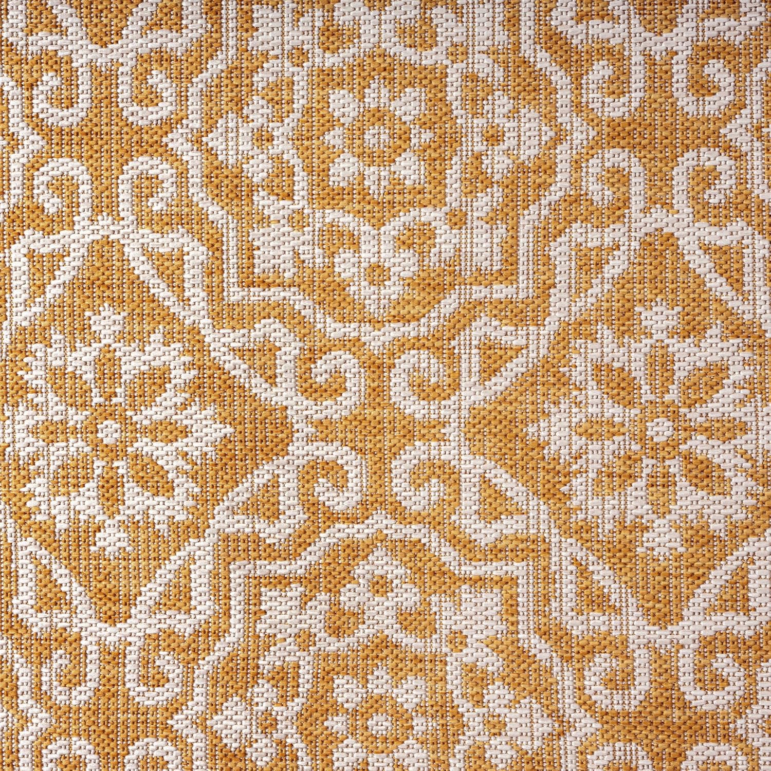 Nicole Miller New York Patio Country Julia Transitional Geometric Indoor/Outdoor Area Rug, Yellow/White, 6'6"x9'2"