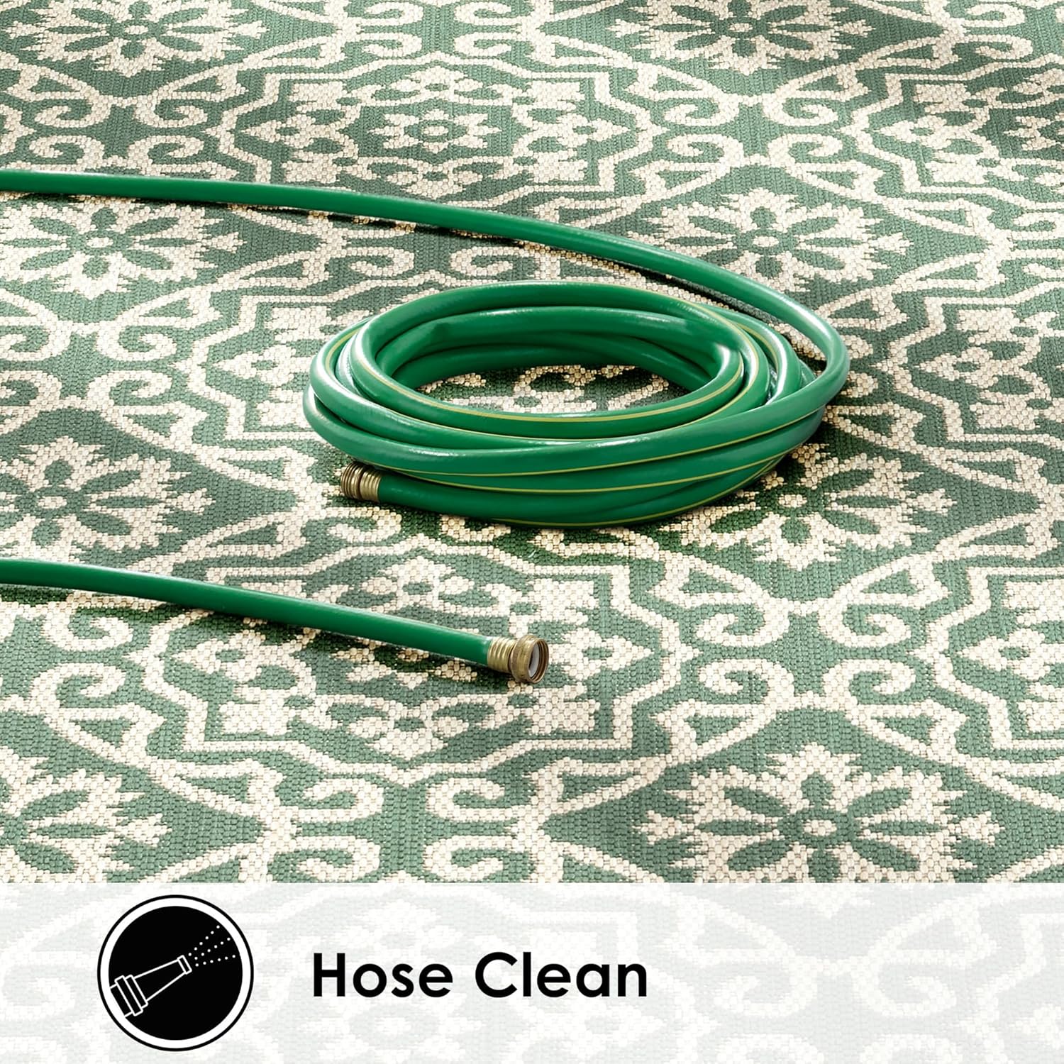 Nicole Miller New York Patio Country Julia Transitional Geometric Indoor/Outdoor Area Rug, Green/Beige, 6'6"x9'2"