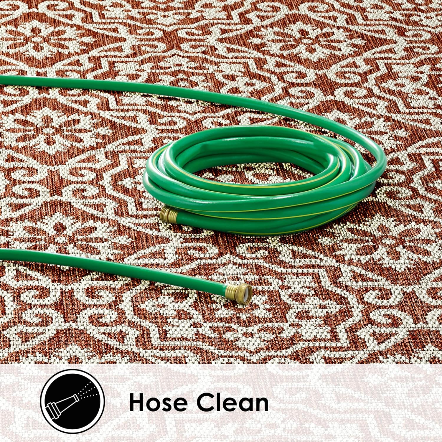 Nicole Miller New York Patio Country Julia Transitional Geometric Indoor/Outdoor Area Rug, Terracotta/Ivory, 7'9"x10'2"