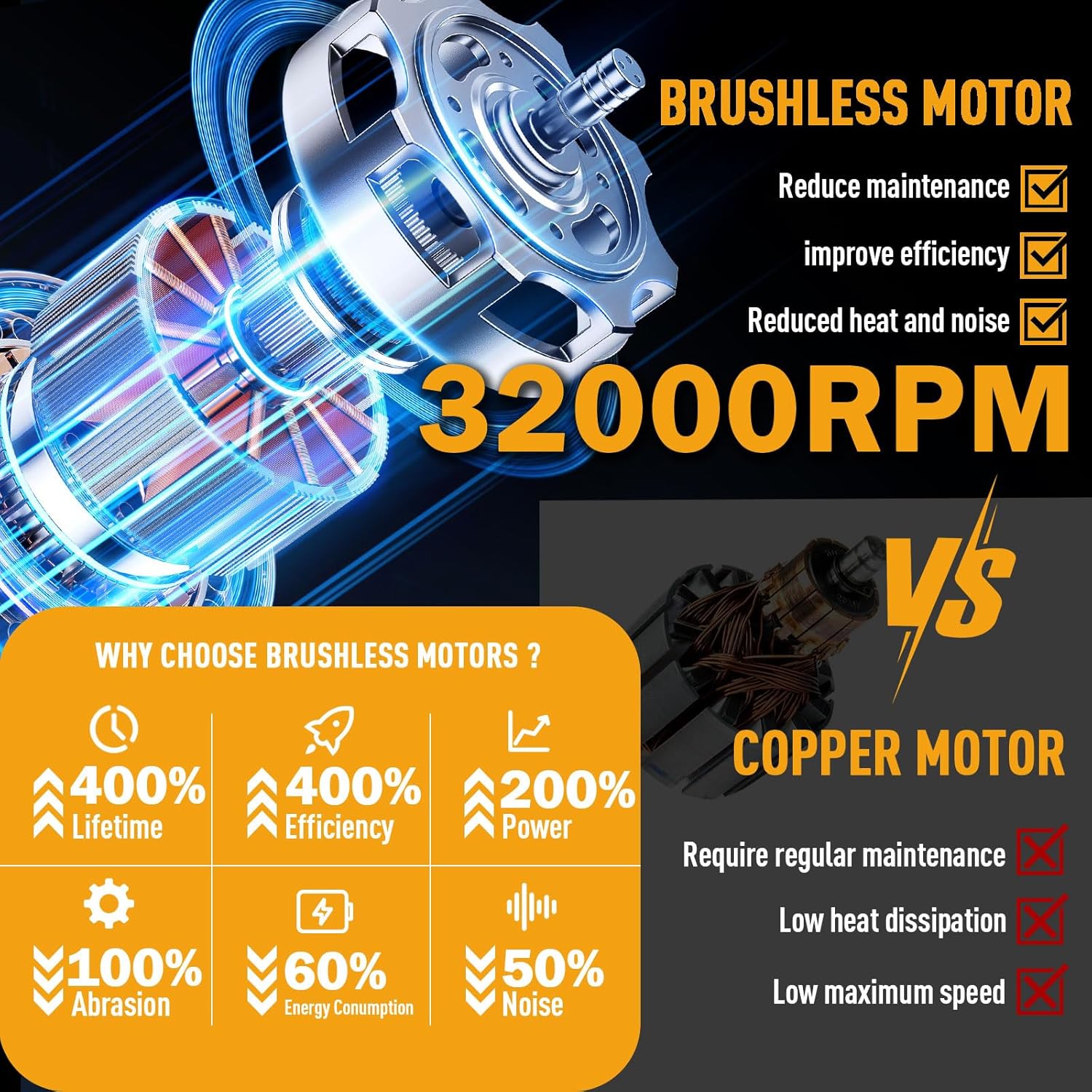 - ăAdvanced Axial Fan Technology & High Performance Brushless Motorsă:Sihuird leaf blower uses high efficiency brushless motor, maximum setting 32000RPM, with advanced axial fan technology, it provides larger air volume and more heat dissipation than traditional centrifugal fans. And equipped with 12 turbine blades and turbo charging function, which provides higher airflow. Air volume and wind speed up to 680 CFM and 190 MPH.