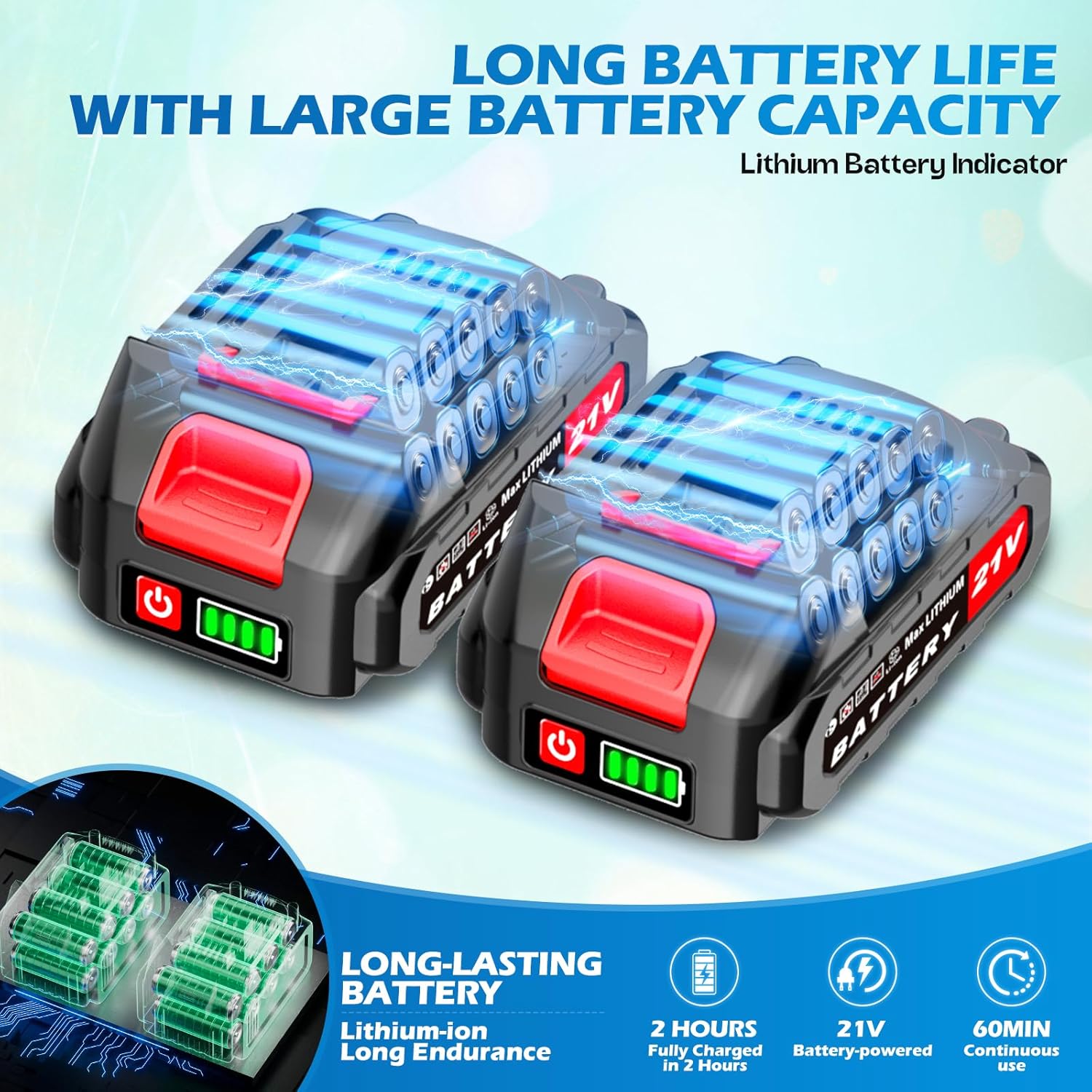 Cordless Hedge Trimmer, 2-in-1 Hedge Trimmer, Ultra Long Battery Life with Battery*2, high-Power and high-Capacity Grass Trimmer for Gardens, Yards and lawns, Including Charger