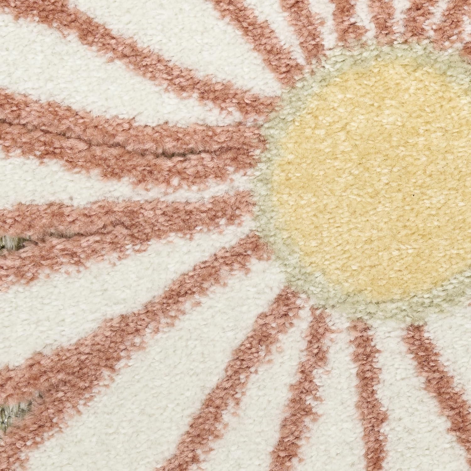 - Flat weave with raised, cut patterns for a delightfully textured feel