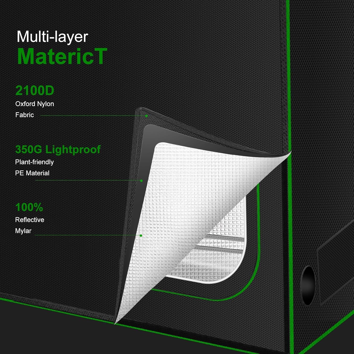 - 【Highly Reflective Material】: The grow tent is lined with 100% highly reflective 2100D diamond polyester film, which has excellent reflective performance, effectively assists your indoor growing lamps and equipment, enhances light utilization, maximizes plant photosynthesis, and provides sufficient growth energy for your plants.