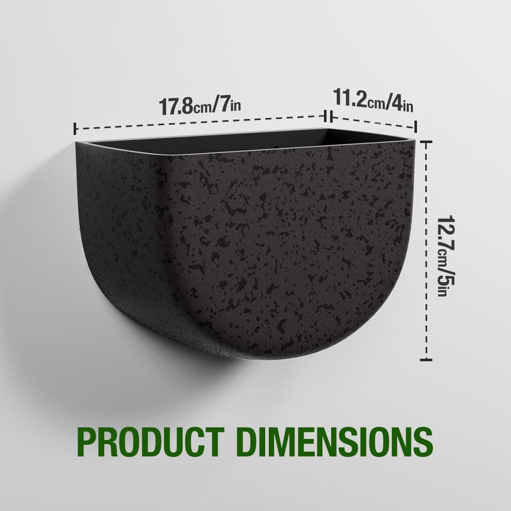 2 Pack Wall Hanging Planter Pots for Indoor and Outdoor Plants, 7 Inch Half-Moon-Shaped Plastic Wall Planter, Wall Mounted Succulent Planters (Iron)