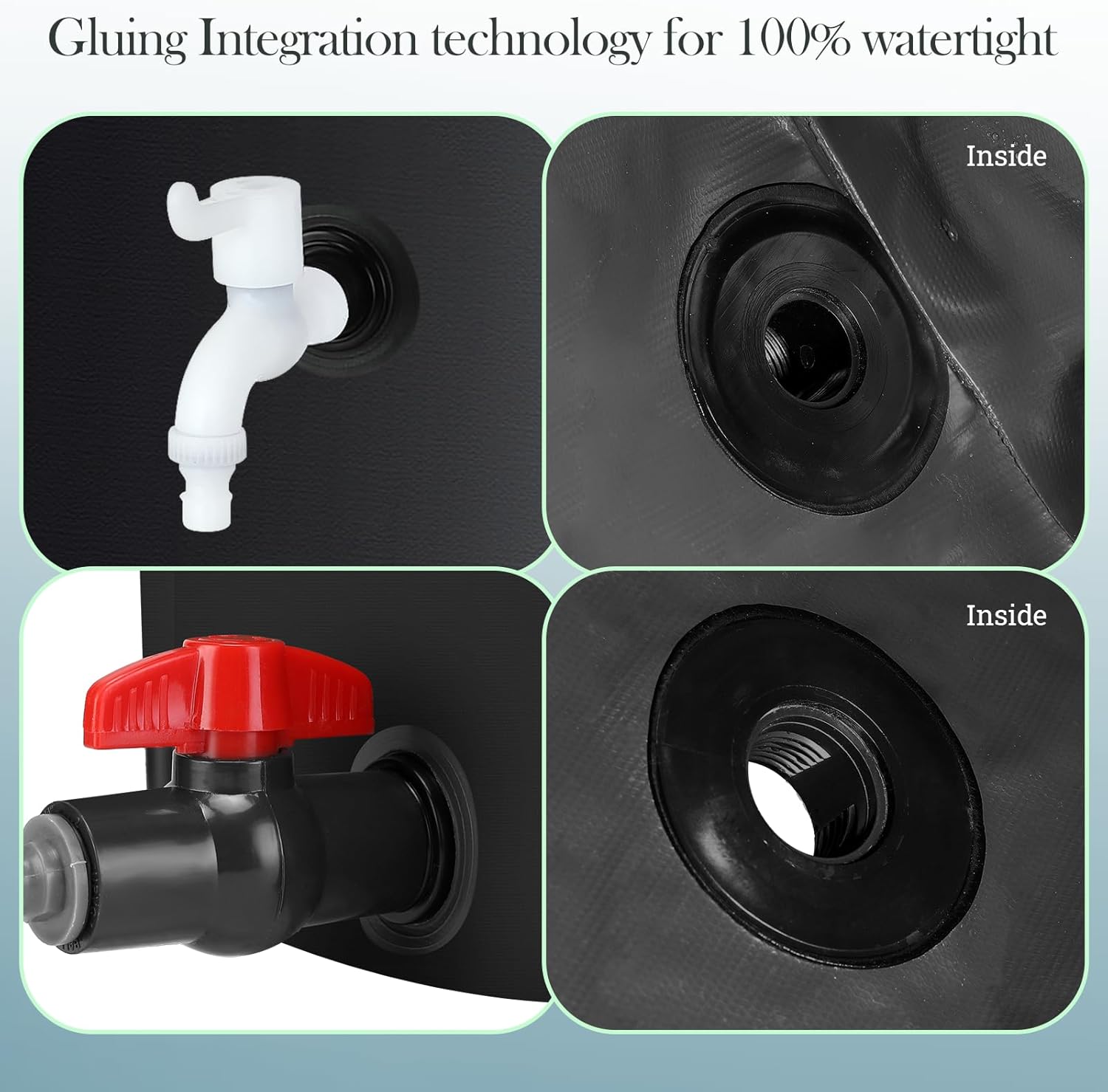 - 【Premium Quality & Durable】Our portable rain barrel is built with high - performance triple - 3-ply PVC material. This excellent construction protects it from UV rays, heat, sharp objects like twigs, and avoids tearing, so no leakage will happen. Supported by strong rods and a reinforced frame, the collapsible rain water barrel won't collapse or deform even in bad weather like heavy rains or strong winds