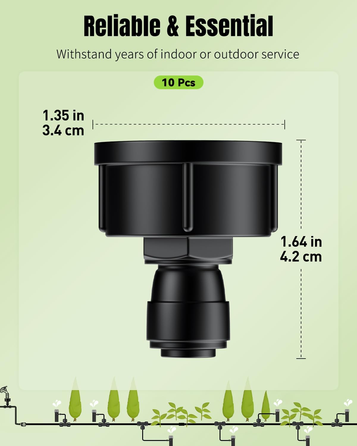 - Wide Application: The drip irrigation faucet adapter works perfectly in any planting zone, including raised beds, vegetable gardens, greenhouses, patios, lawns, and more. Effortlessly bring life to every corner of your space