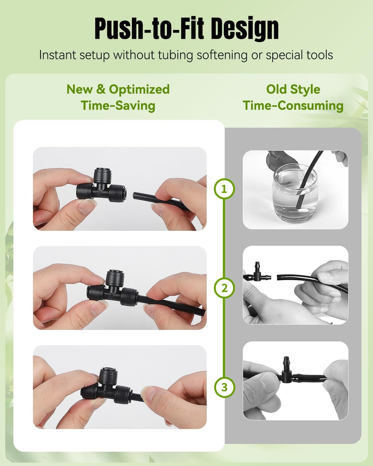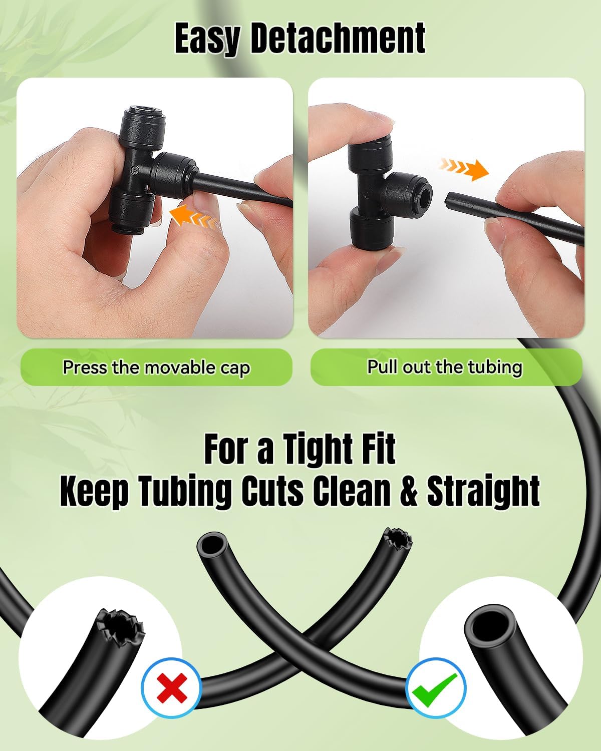 - Push-to-Fit Design: No tubing softening or special tools required! Simply push your tubing into the inlets of the drip line connectors for instant setup. To detach it, just press the inlets and pull out the tubing. Greatly save your time and effort
