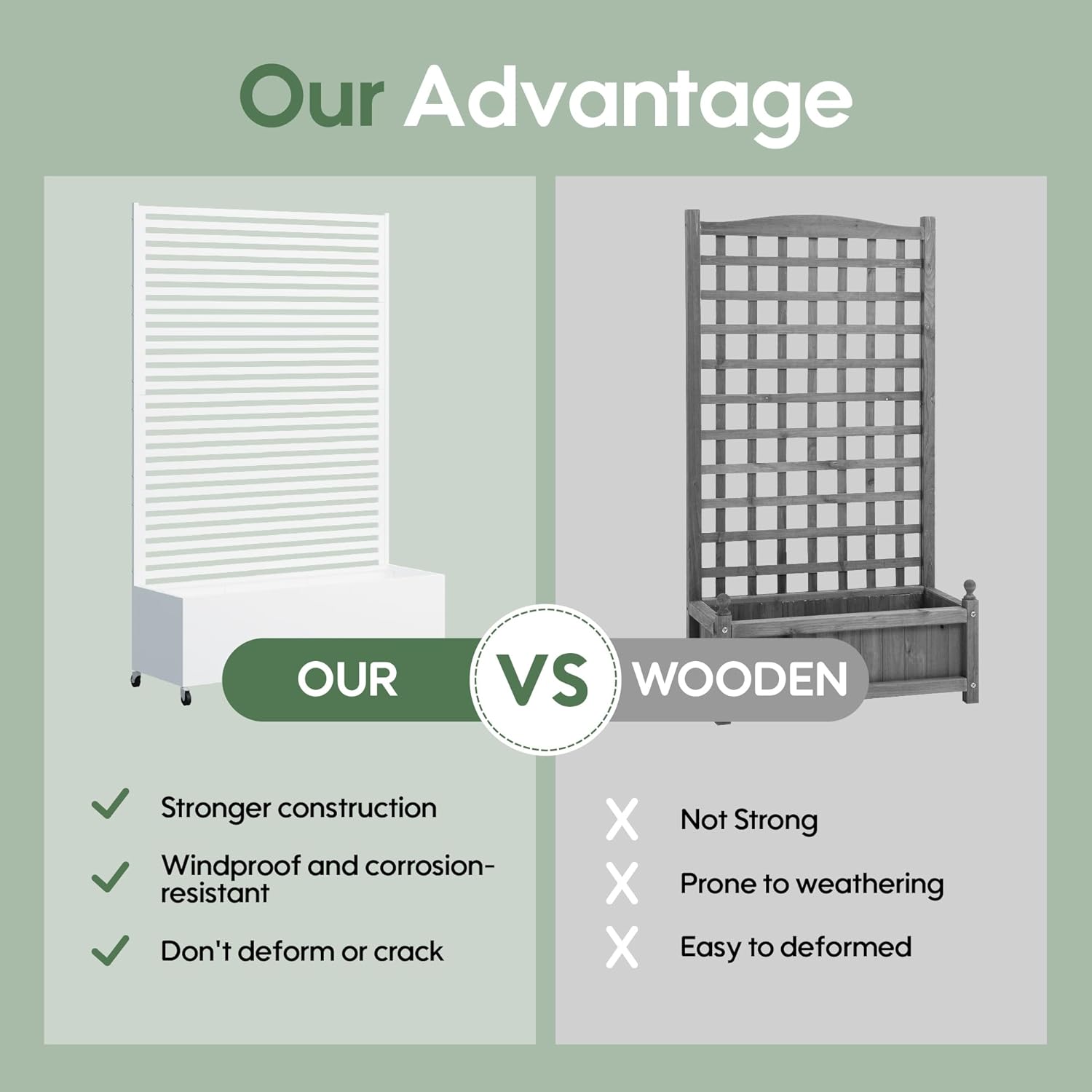 - Versatile Design--This metal planter with trellis serves triple purposes as an elevated garden bed for flowers/plants, a sturdy trellis for climbing flora, or a stylish privacy screen to enhance outdoor living spaces. Its adaptable structure makes it the ultimate gardening solution for diverse needs.