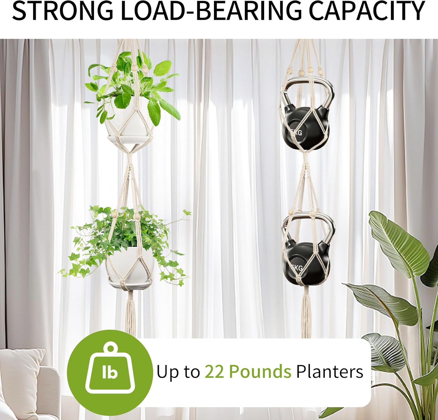 - Handmade for Durability: Crafted from natural cotton rope, this hanging basket is meticulously handwoven for long-lasting strength and support; Fits 4 to 8 inches pots and supports up to 22 lbs, keeping your plants safely suspended without tilting