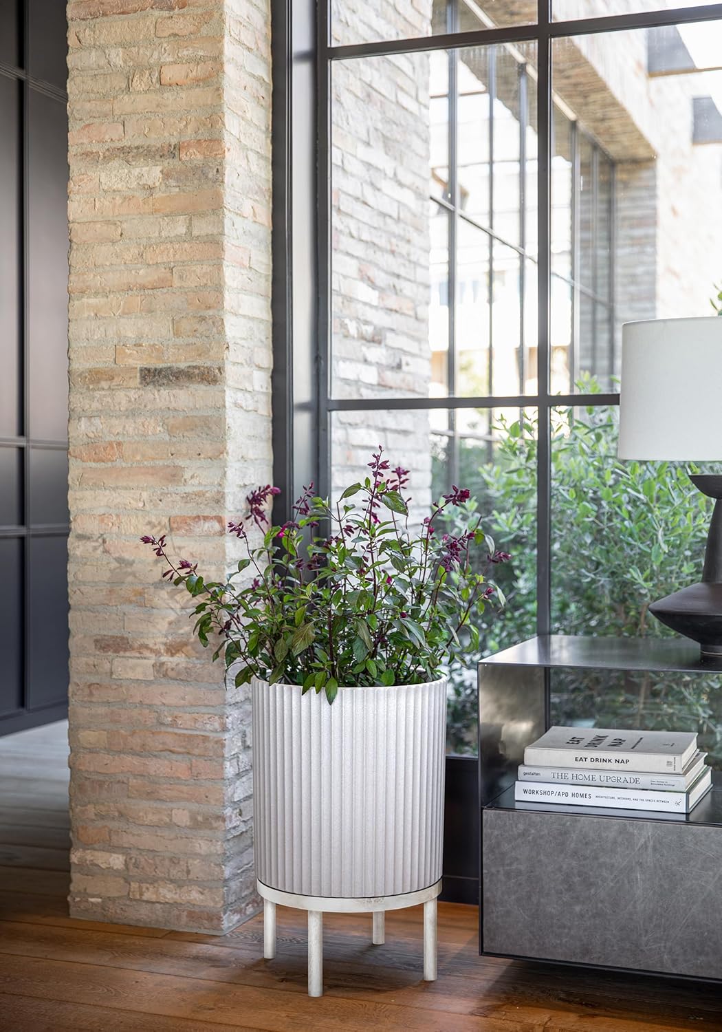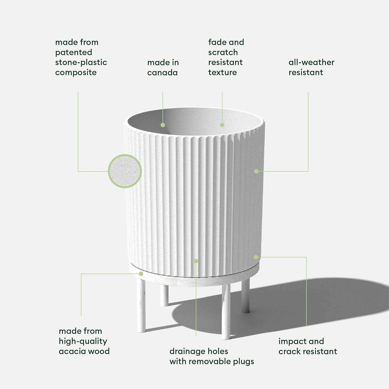 Veradek Demi Series Round Planter w/Stand for Porch/Patio | Durable Plastic-Stone Composite & Wooden Stand | Modern Décor for Tall Plants, Flowers