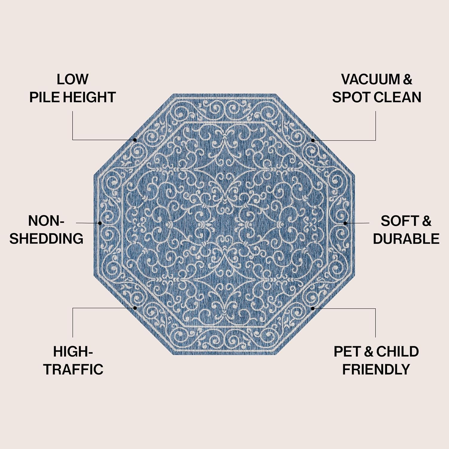 JONATHAN Y SMB106D-5TGN Charleston Vintage Filigree Textured Weave Navy/Gray 5' Octagon Indoor/Outdoor Area Rug, Non-Shedding, Stain Resistant,Fade Resistant, Easy-Cleaning for Backyard Patio, Porch