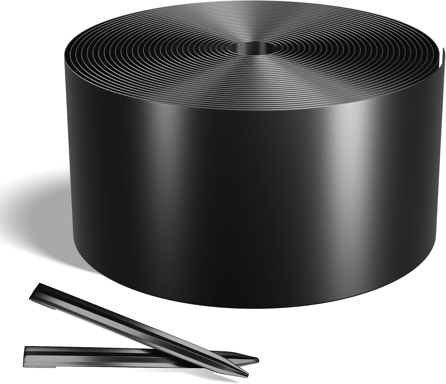 Worth Galvanized Steel Landscape Edging 4.5" x100' Metal Garden Edging Roll Flexible Bender Border with 31Pcs Stakes for Lawn, Flower Bed Edges, Black