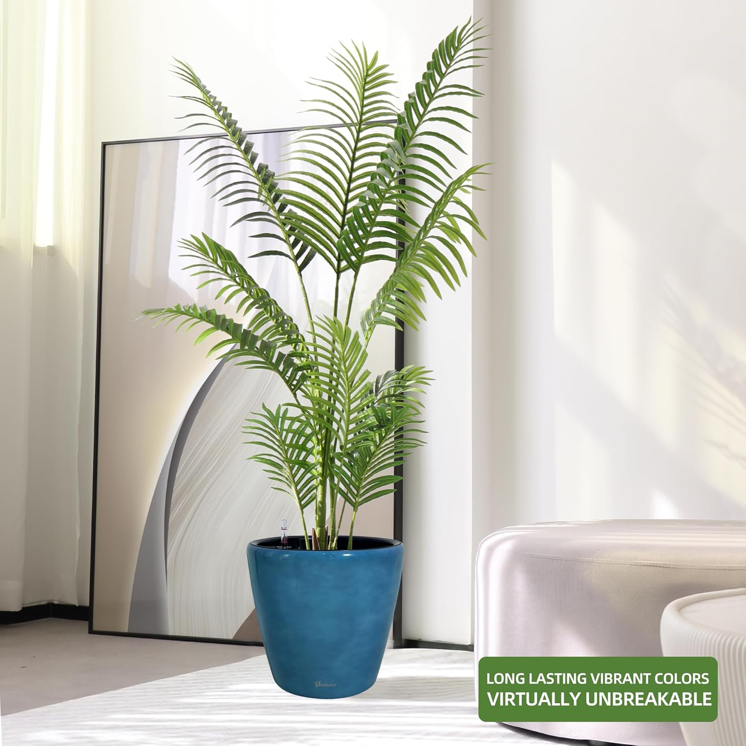 Dexceder 15x14 Self Watering Planter with Wheels Indoor Outdoor, Inner Pot Design, Thickened Large Floor Standing Flower Plant Pot with Water Level Indicator (Peacock Blue Gradient)