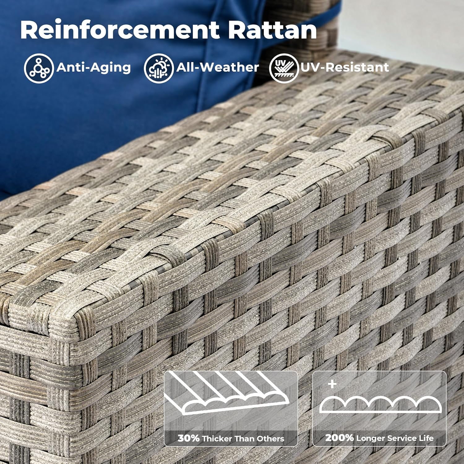 - All-weather Wicker Rattan: Our outdoor sofa sets have very durable PE wicker rattan for all-weather use and a natural texture with good coloring. The high-quality patio seating made of powder coated steel frame ensures good strength and stability